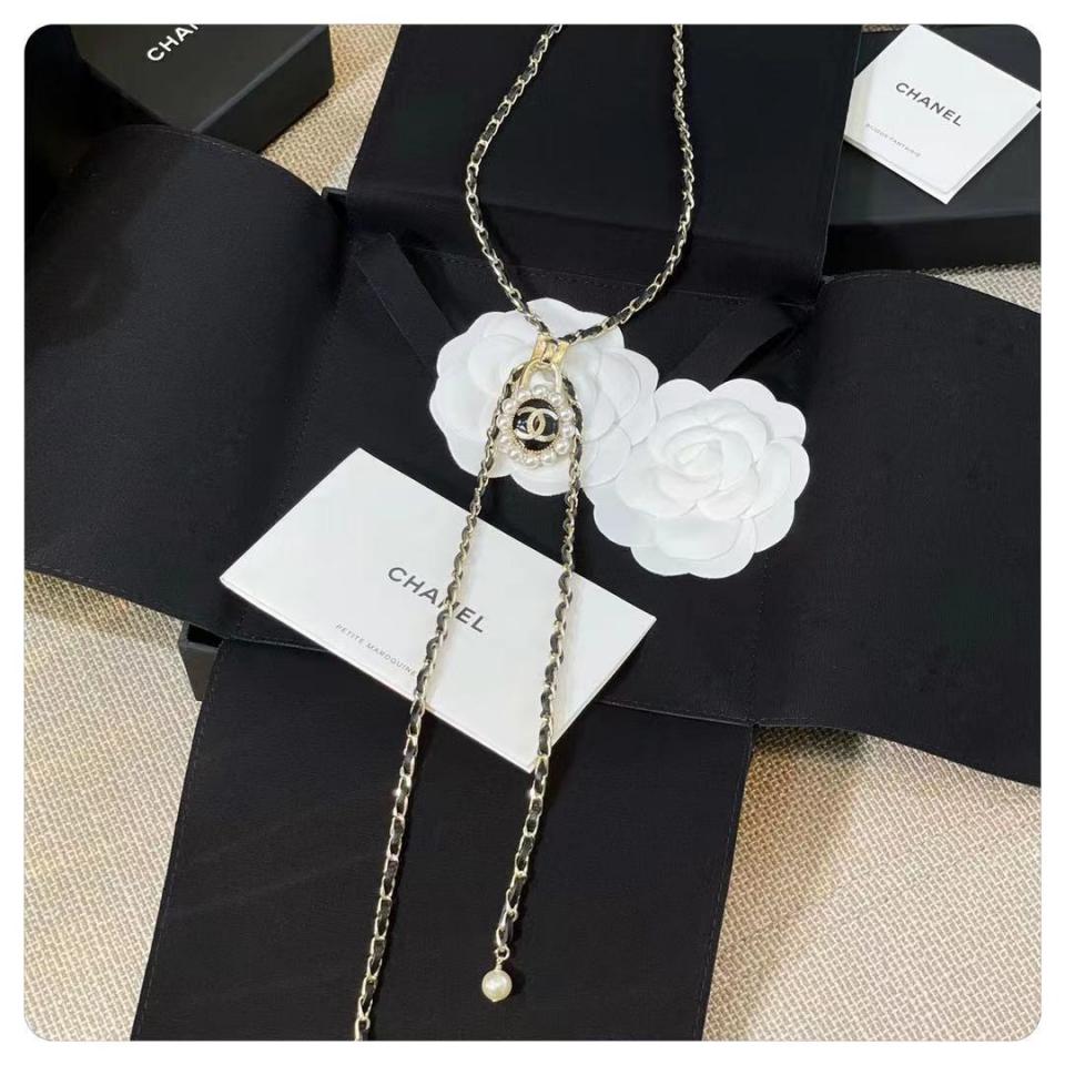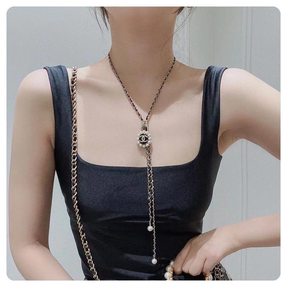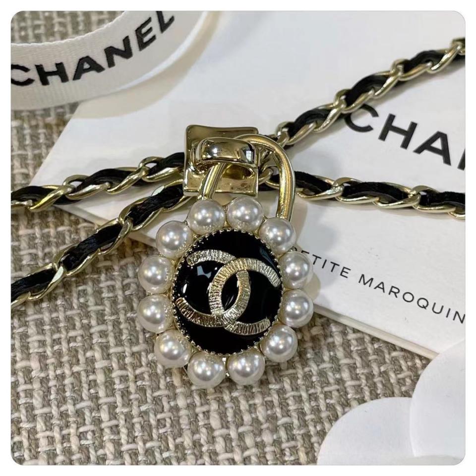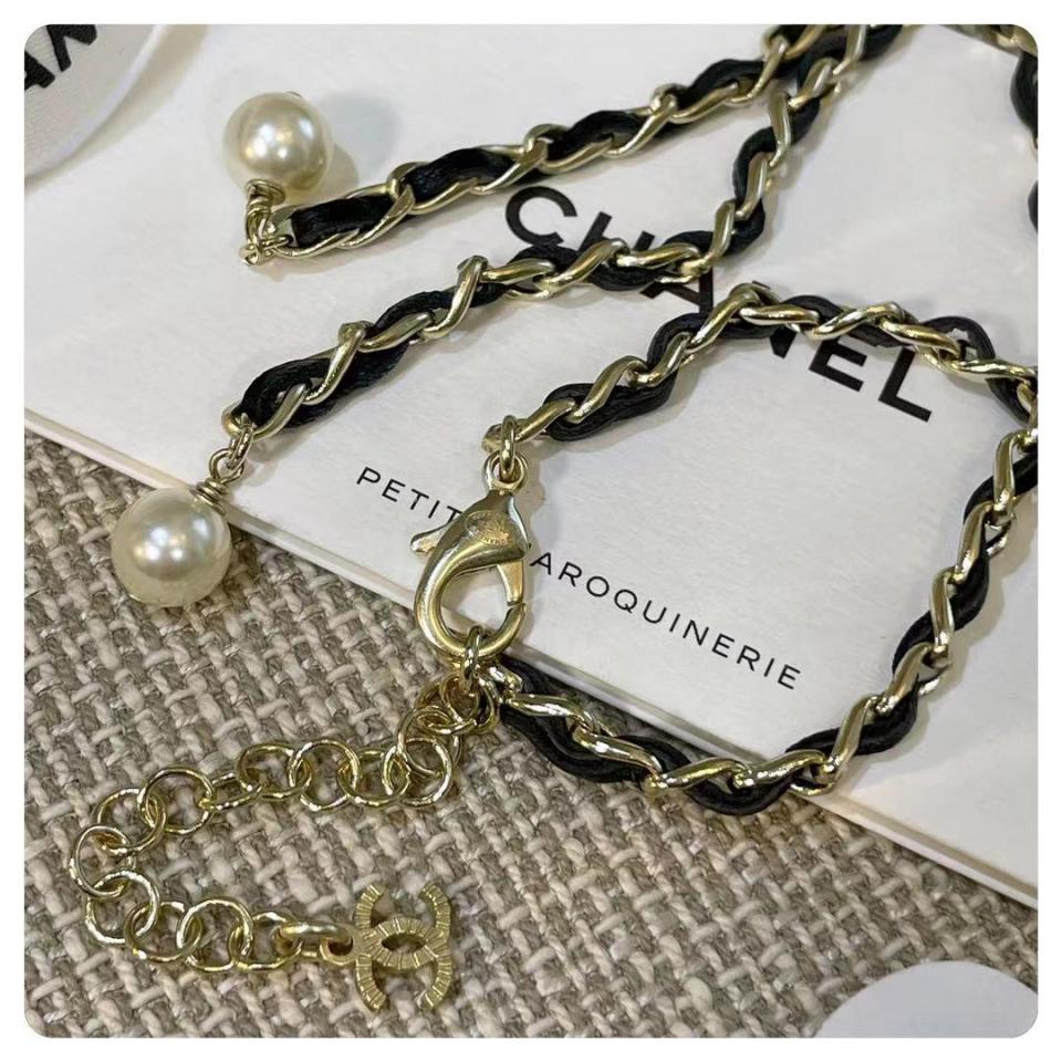 2021早秋 C家皮穿鏈黑色琺瑯珍珠項鍊