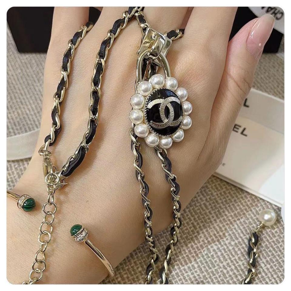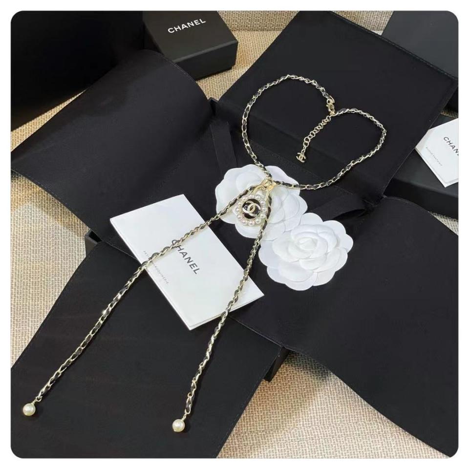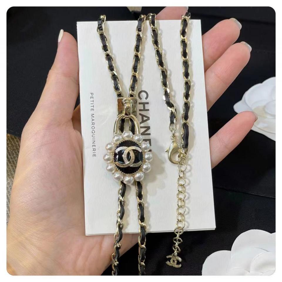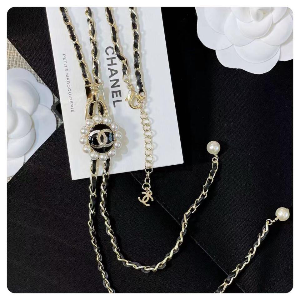 2021早秋 C家皮穿鏈黑色琺瑯珍珠項鍊