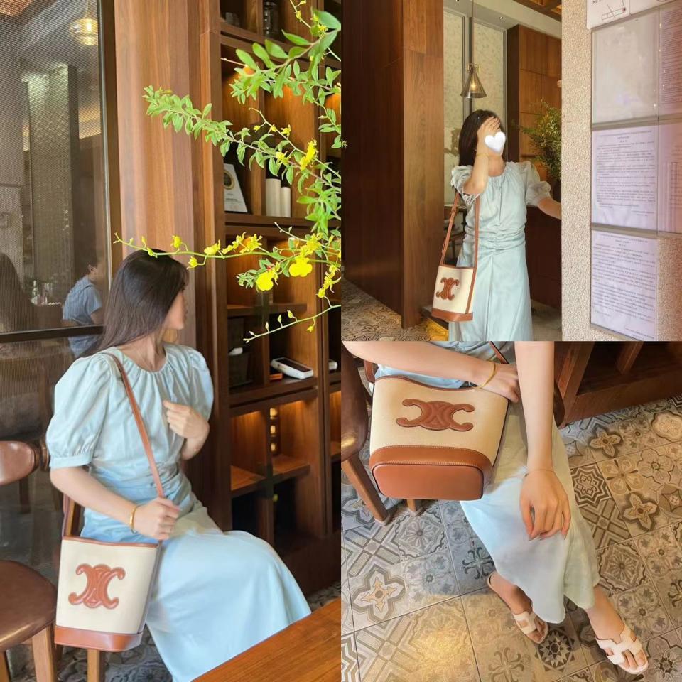 2022早秋新品 CE家凱旋門logo帆布桶包 簡約精緻不失品味