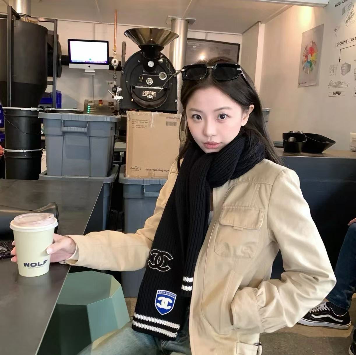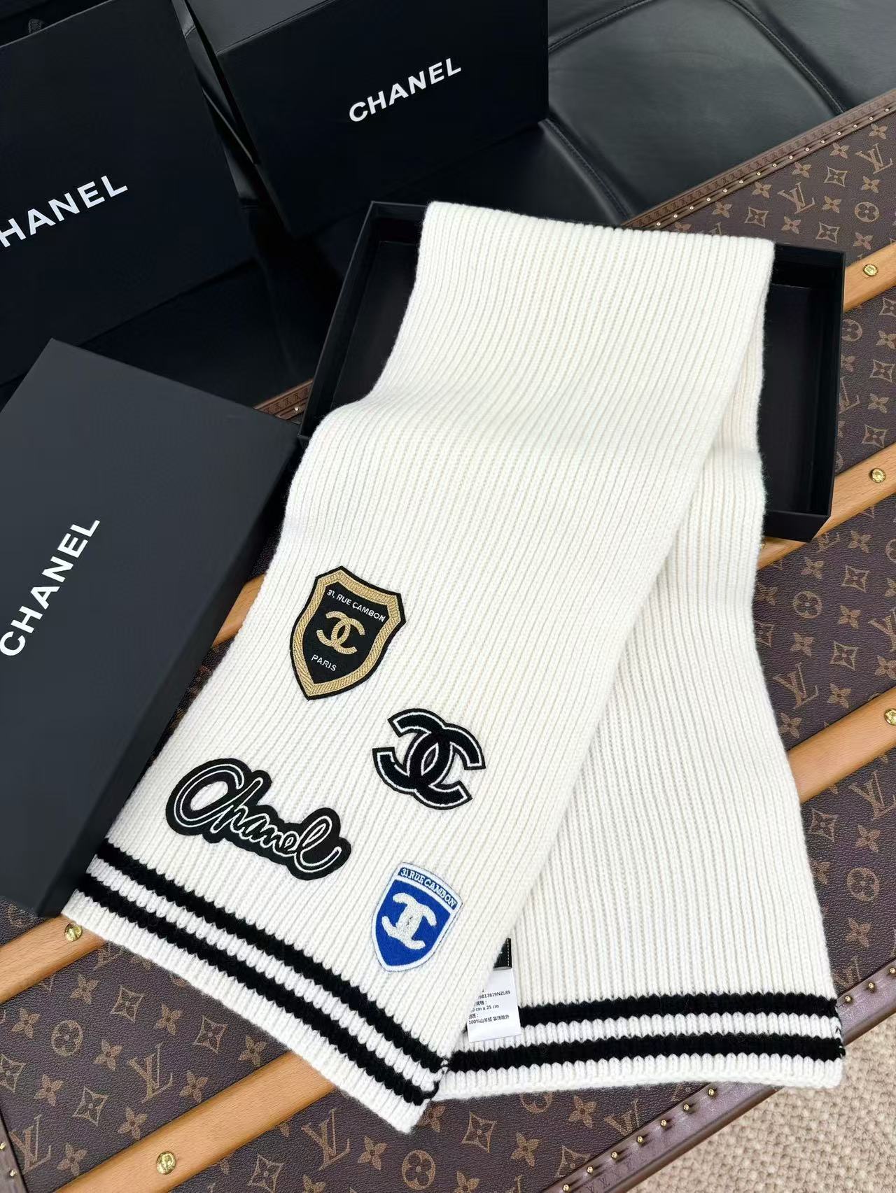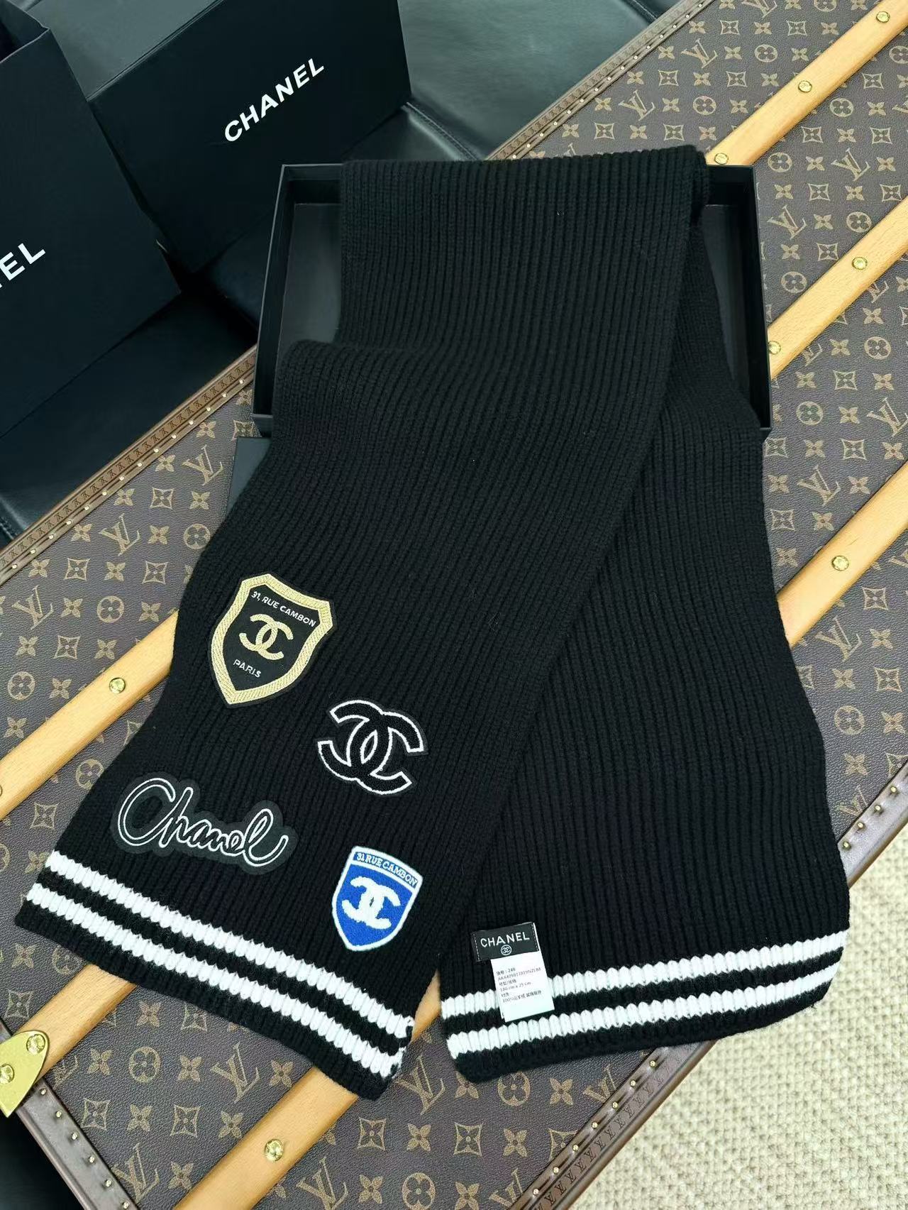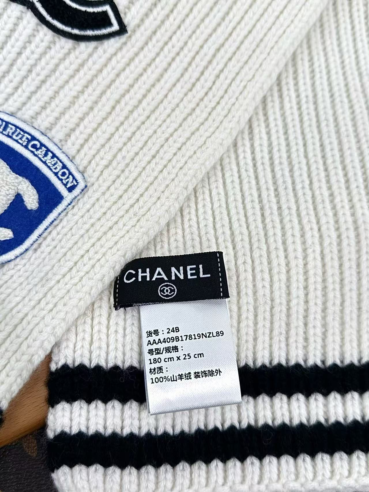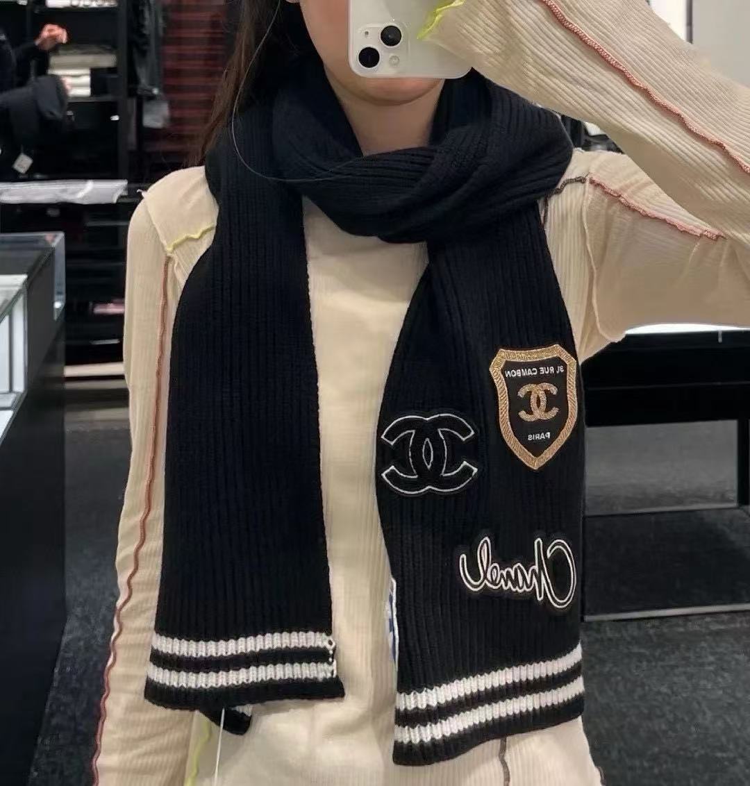 2024秋冬新品 C家24b勳章系列羊絨圍巾 學院風格