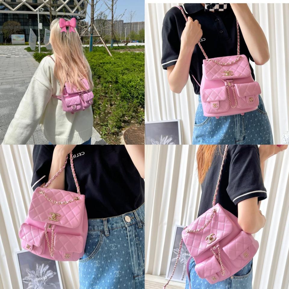 2023春夏新品 C家23P雙口袋復古背包(粉色) 顏值非常耐看