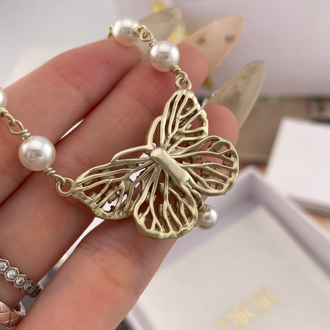 2025春夏新品 D家 鏤空珠蝶珍珠項鍊