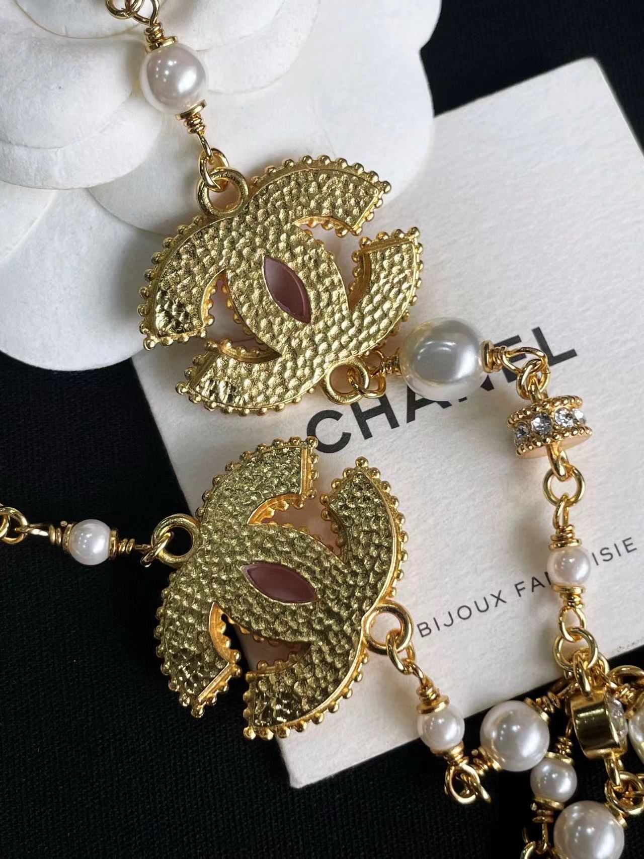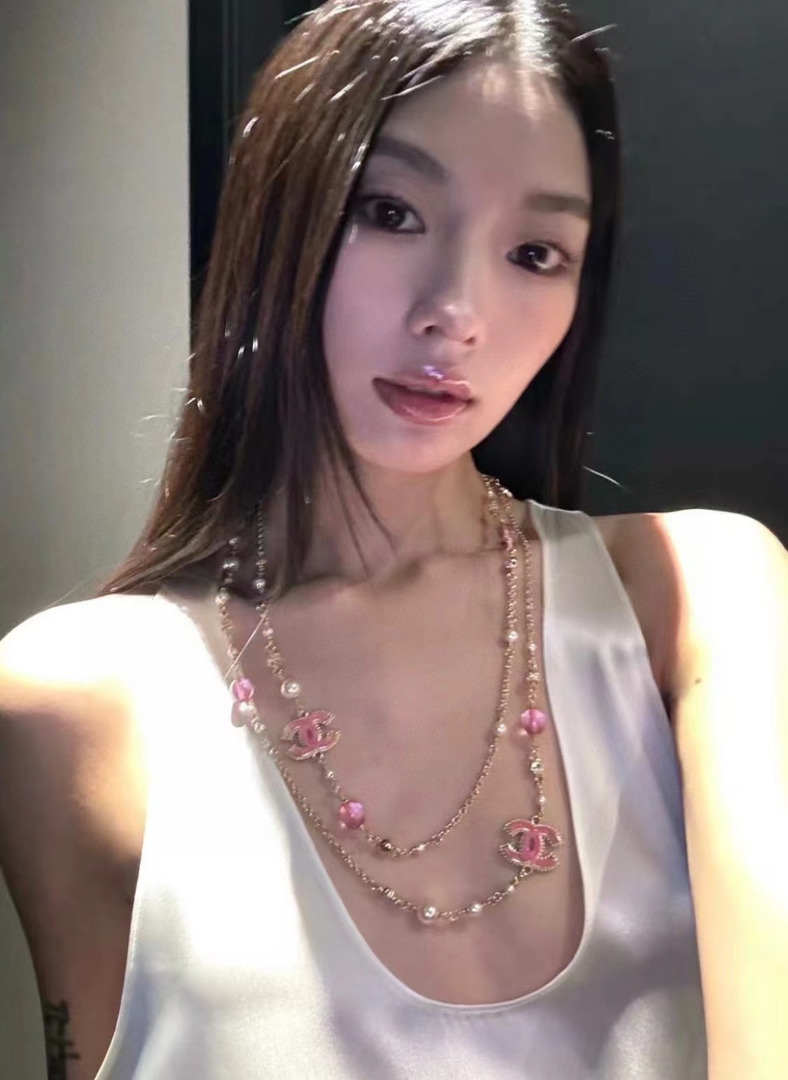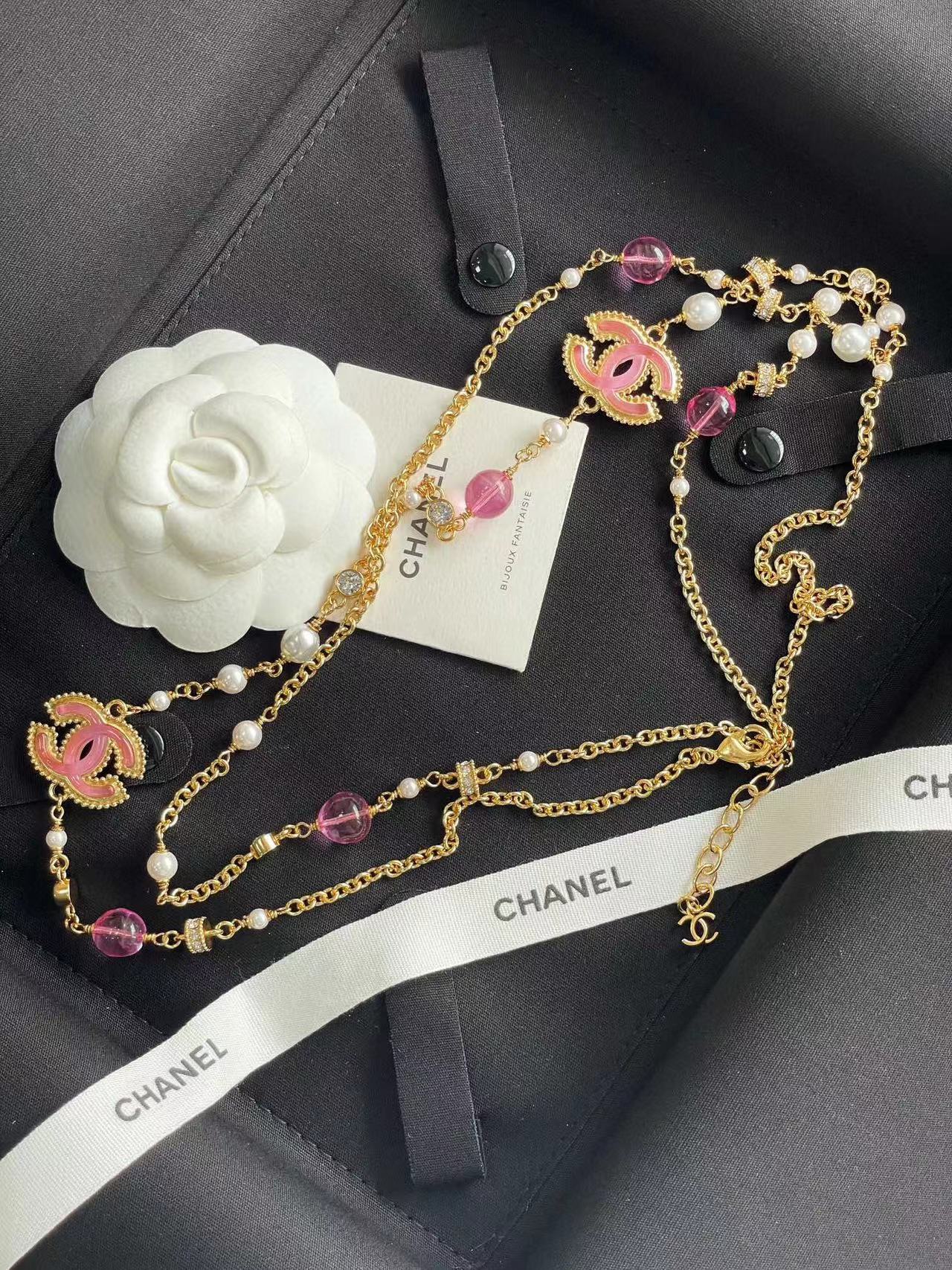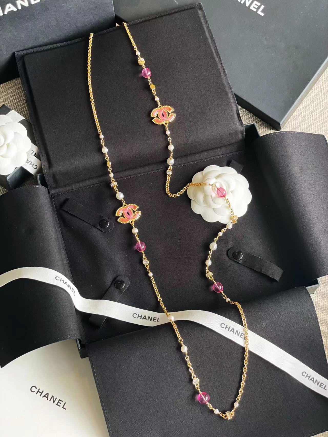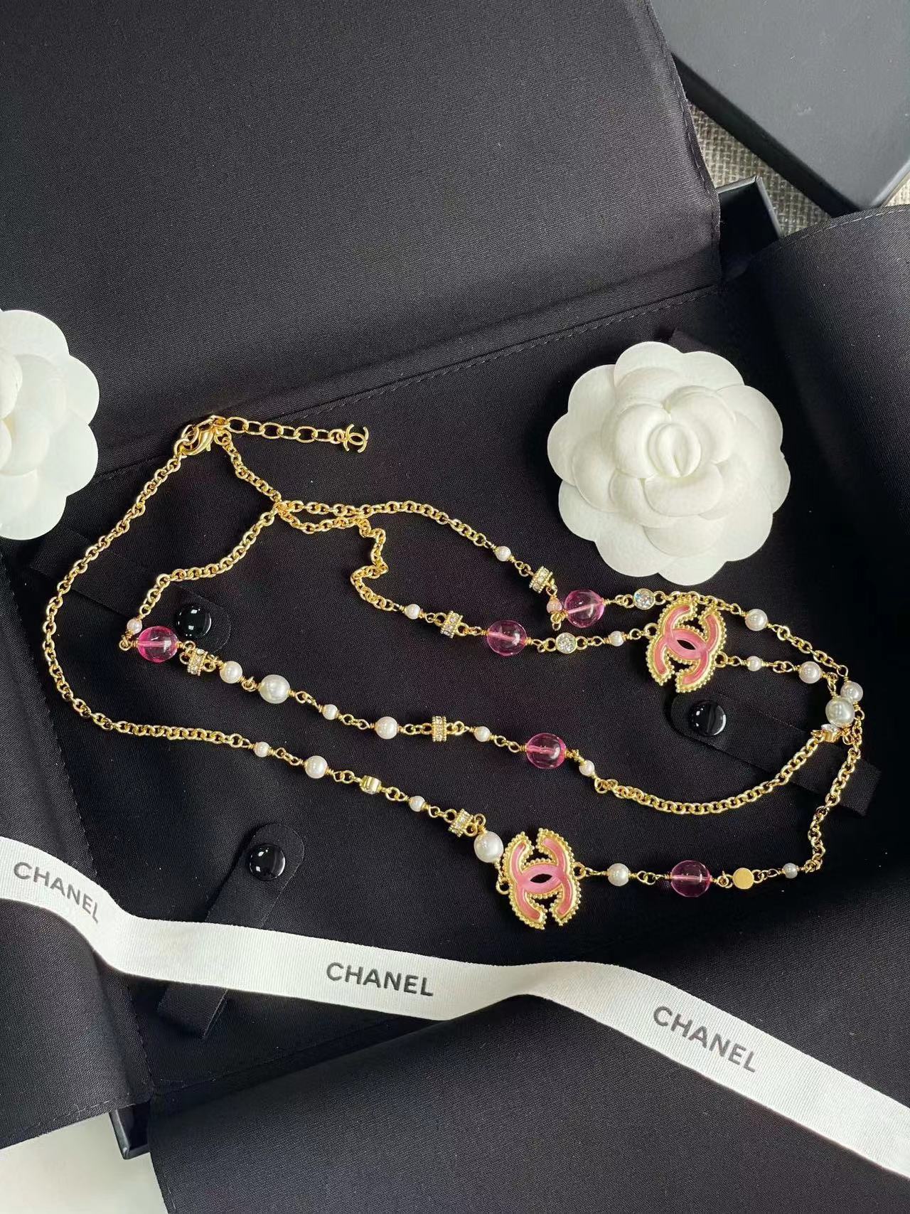 2024春夏 C家粉色水晶琉璃雙C珍珠長鏈
