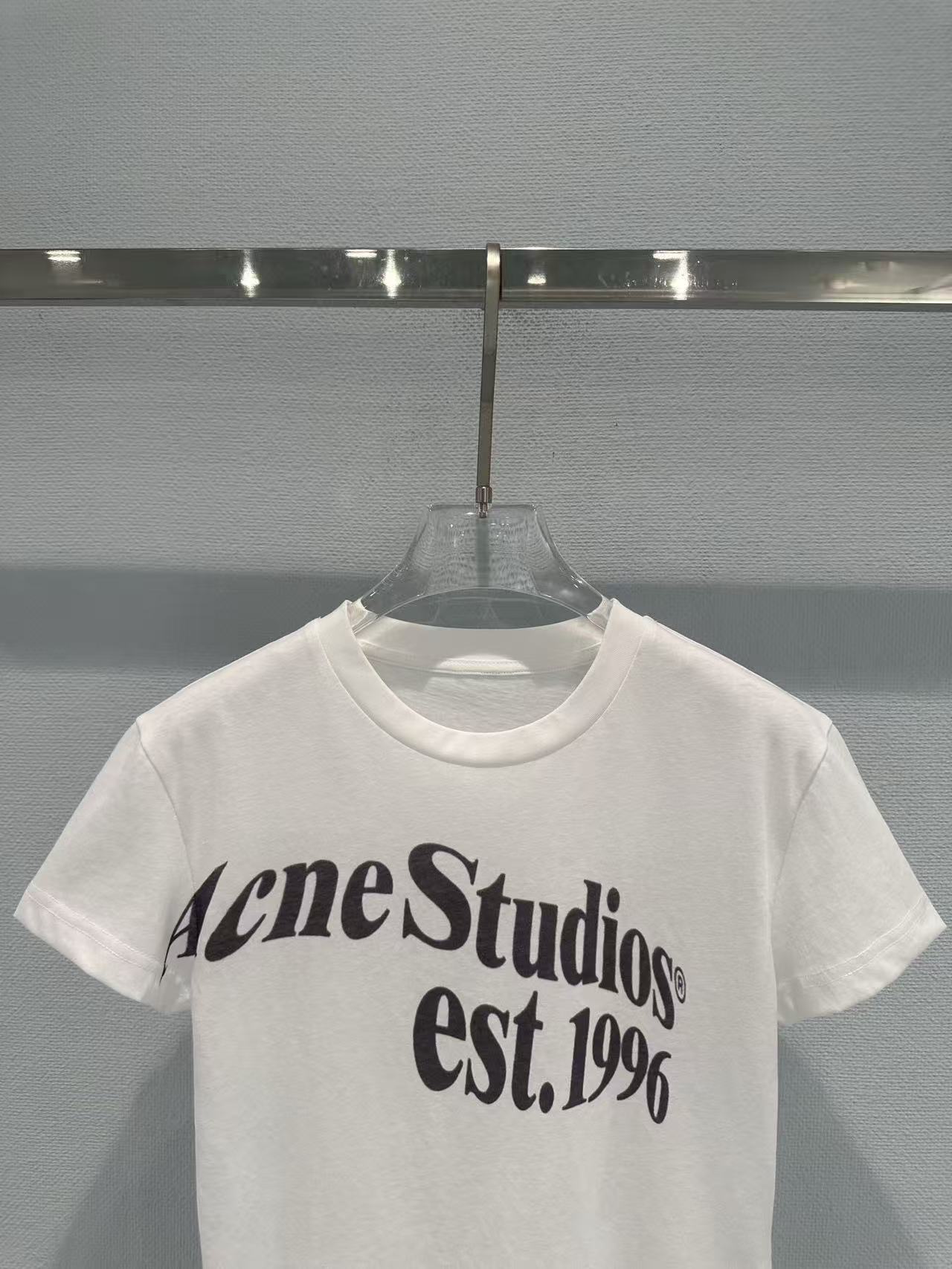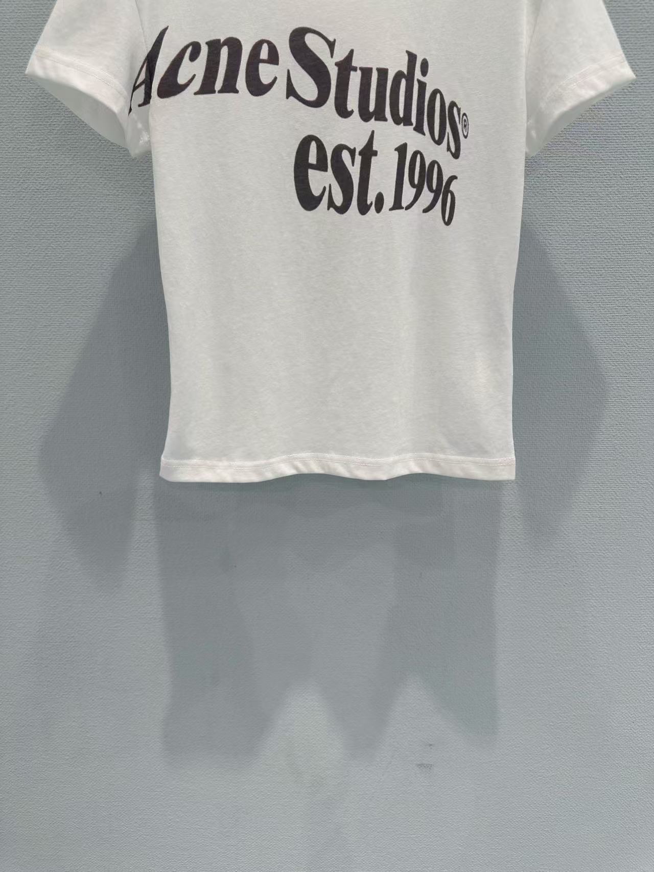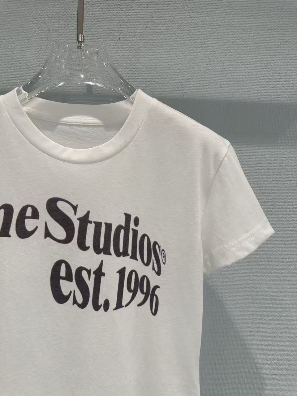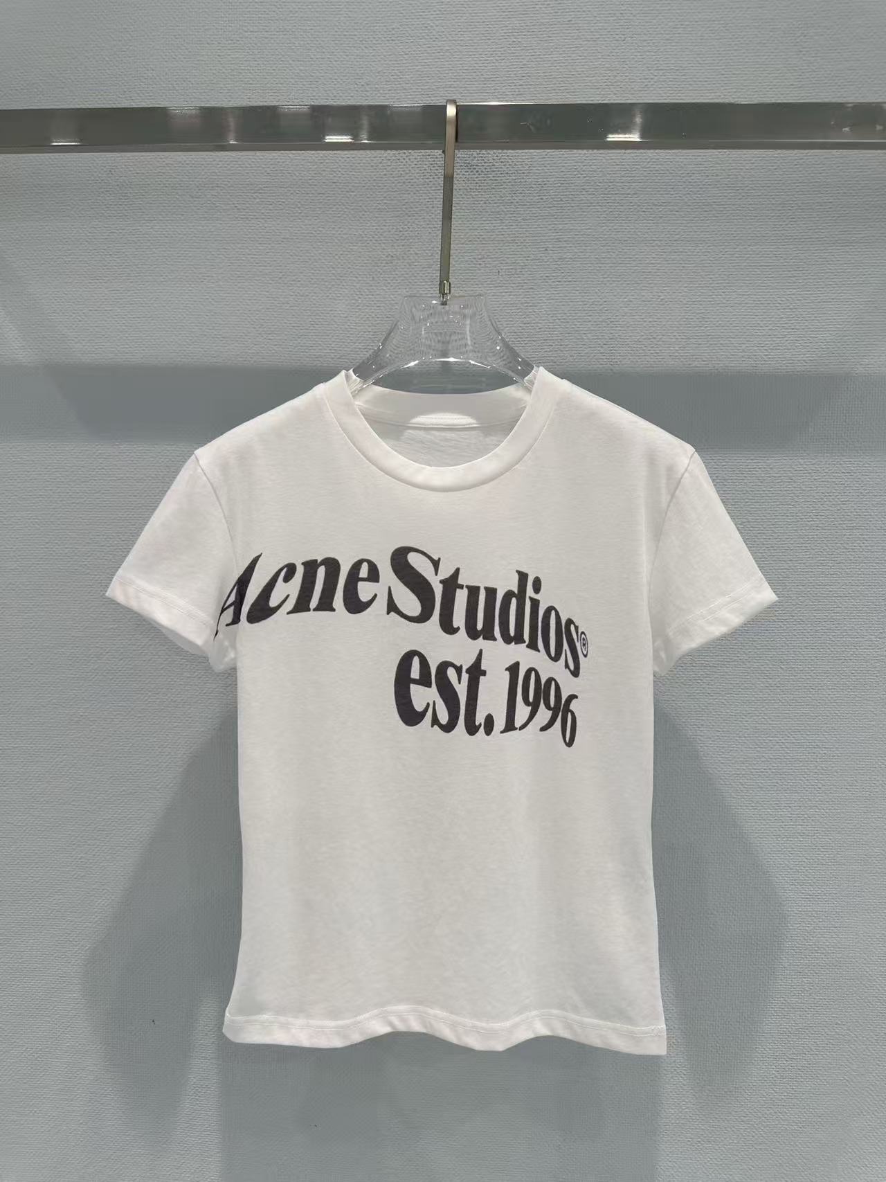 這次分享的 2026 春夏新品印花 T 恤,完美詮釋了何謂低調的高級感。設計焦點在於胸前洗鍊的 "Acne Studios est. 1996" 字體,捨棄了繁雜的圖騰,改以純粹的文字排版點亮視覺,在極簡中展現出不容忽視的品牌辨識度。