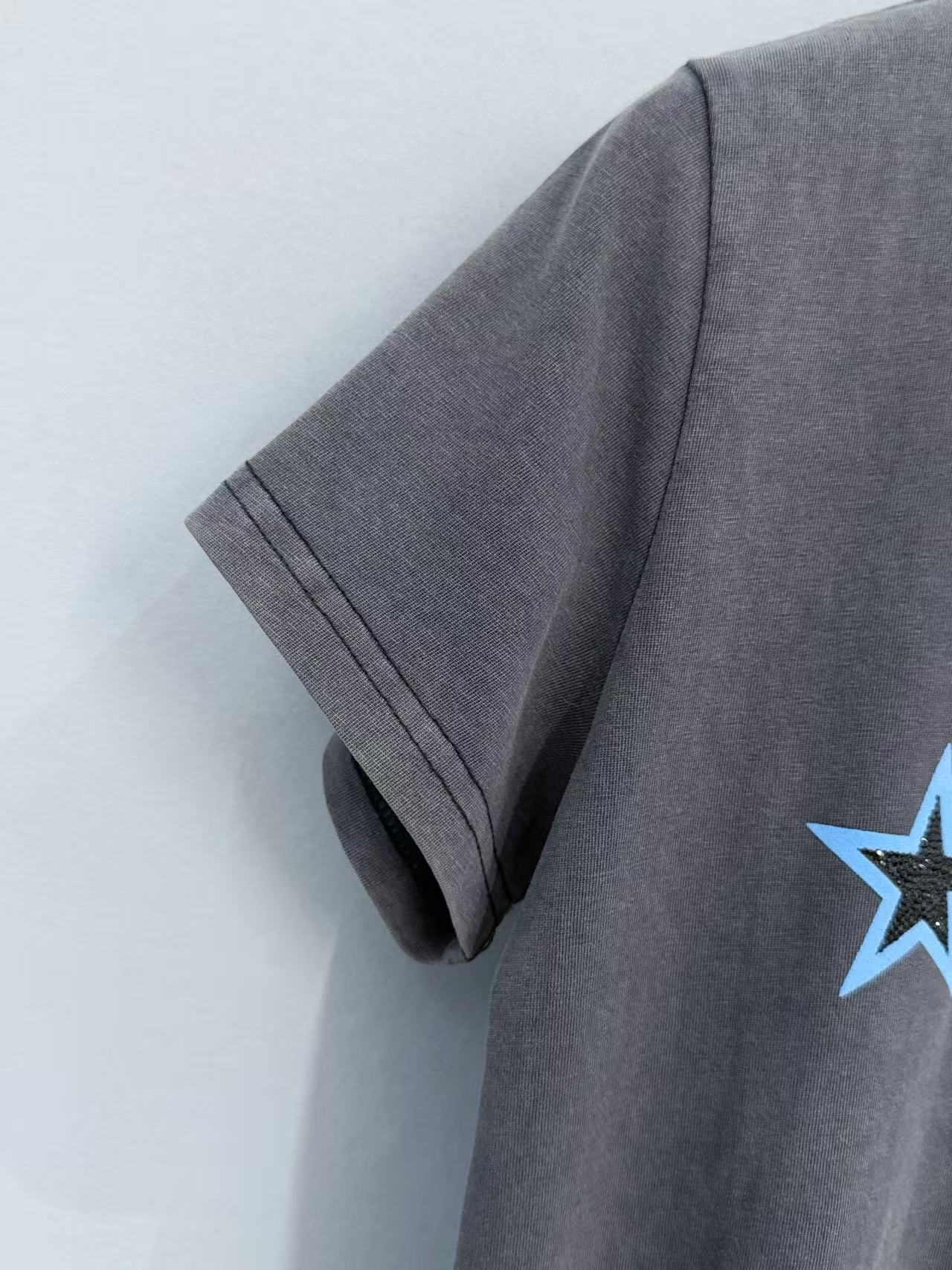 高質感膠印/刺繡細節: 胸前的星星與字母印花,觸感紮實且不易龜裂。