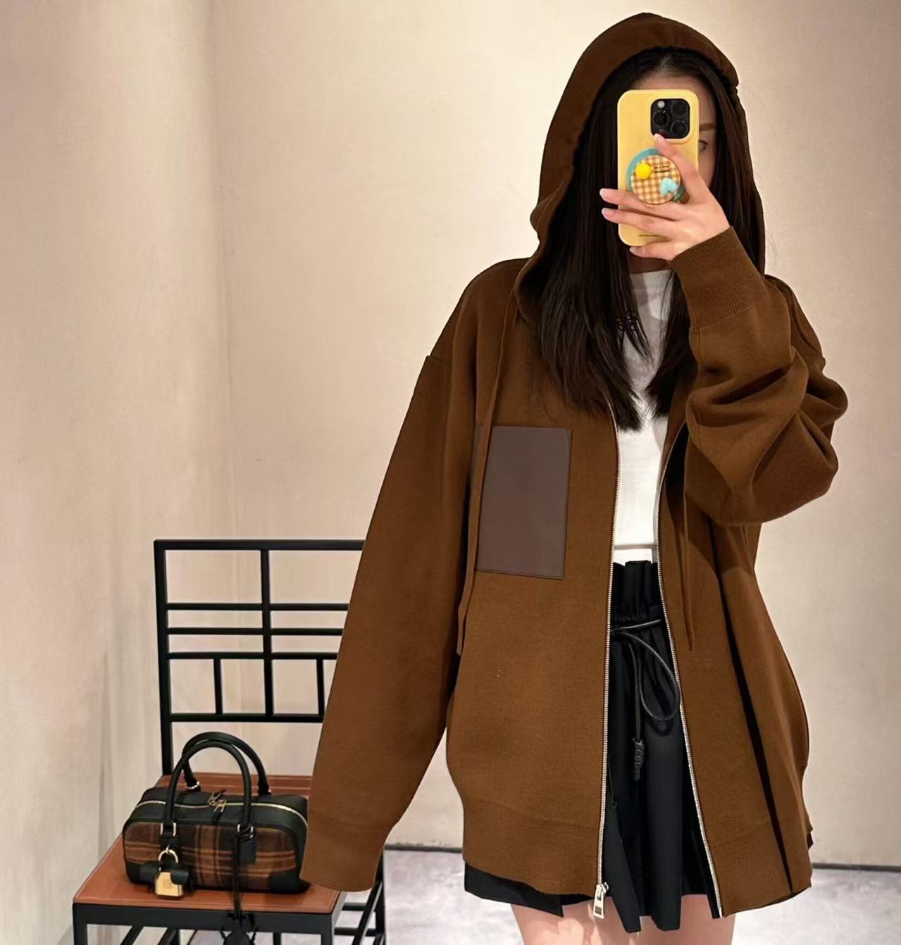 32S羊毛棉混紡定染對色,摸起來細膩到像羊絨,卻完全不癢不變形,版型是微寬鬆落肩+連帽拉鏈設計,帽型挺括又有型,拉上秒變街頭酷女孩,拉鍊一開又優雅名媛,內搭襯衫、西裝、洋裝通通好看,秋冬整季靠這件就夠!