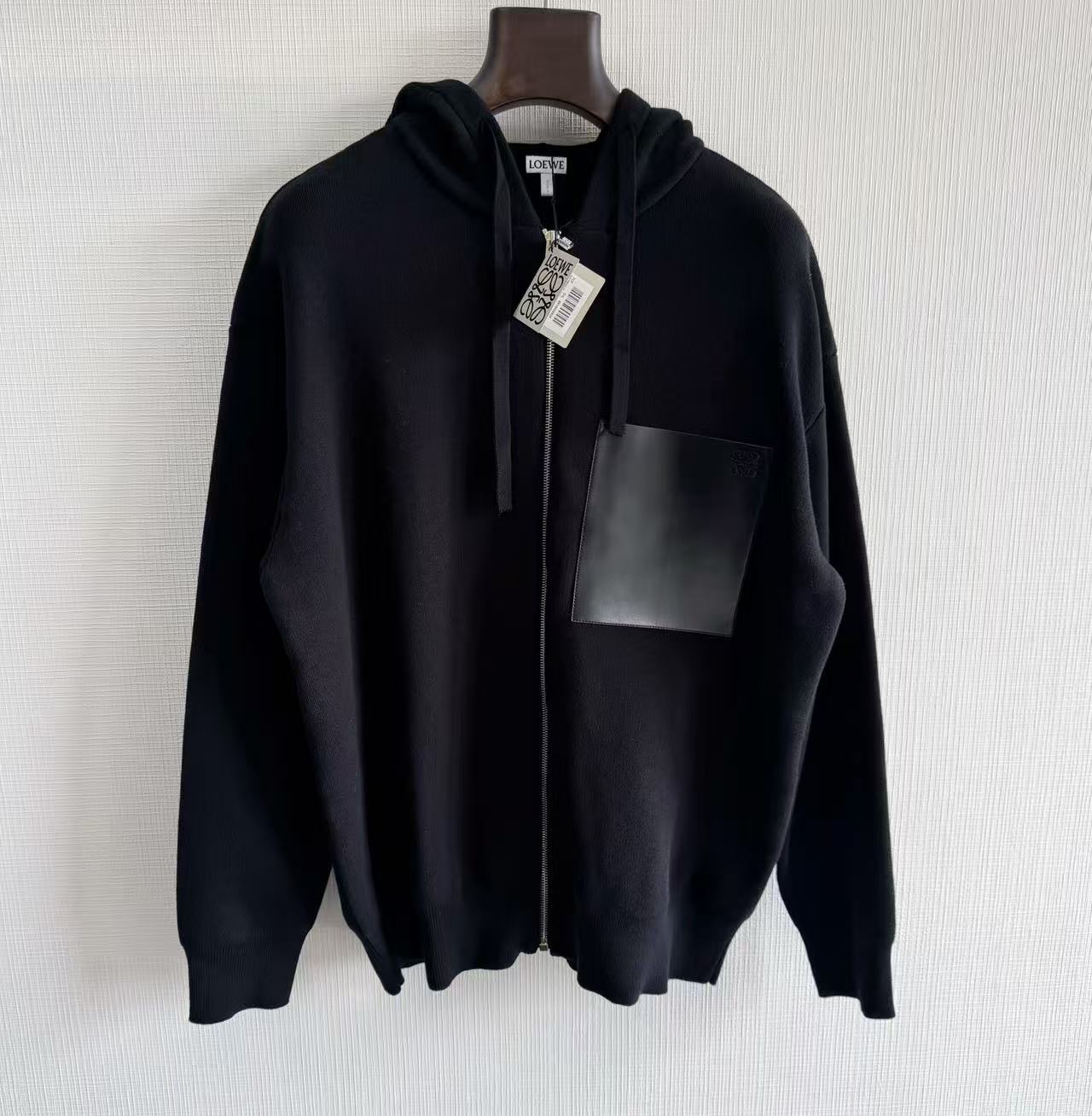 2025秋冬新品 LEW家 壓紋皮革貼布羊毛連帽外套