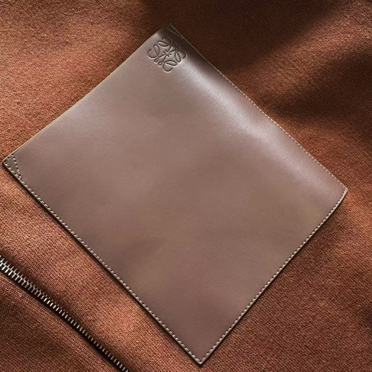 最瘋狂的當然是那「雙面可用Anagram壓紋皮革貼袋」!皮革不是單面,是正反都能看的頂級小牛皮,高溫高壓模具直接壓出Anagram立體紋路,邊緣還做了精緻包邊縫合,摸起來厚實又有彈性,強迫症看了會直接淚崩~