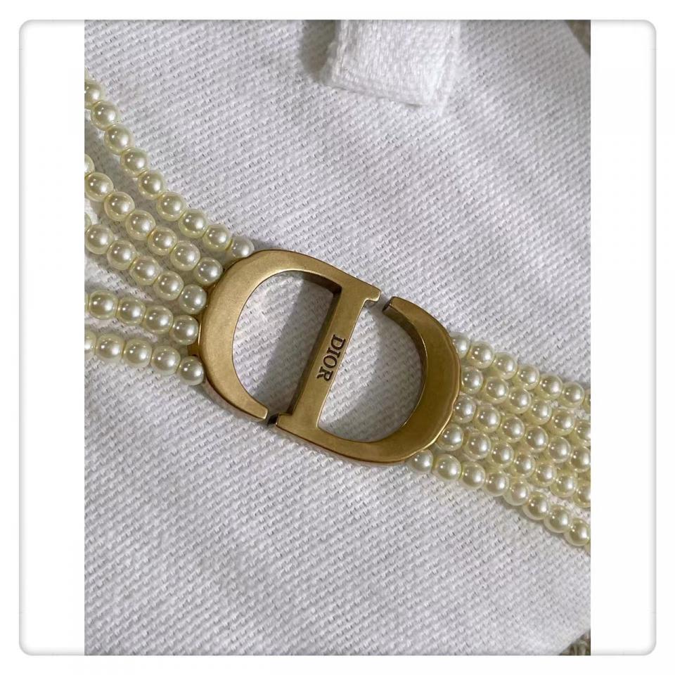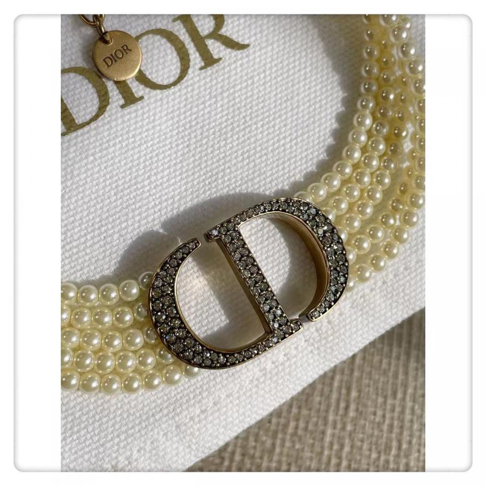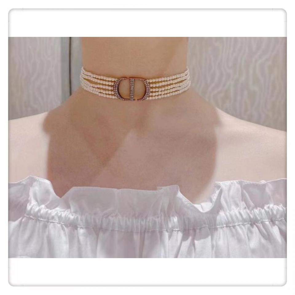 實際內容滿滿,整個秀場出鏡率超高的!珍珠的重疊,中間的主配件滿鑽CD字體非常的有現代感,給整體的項圈帶來一種時尚感!