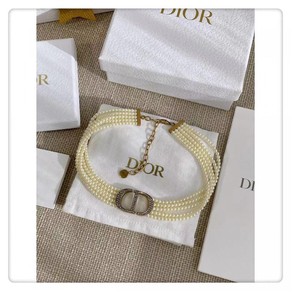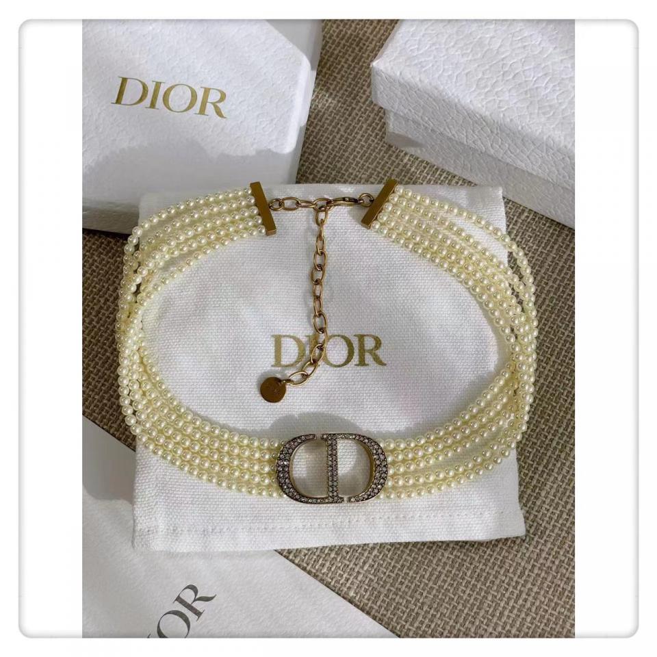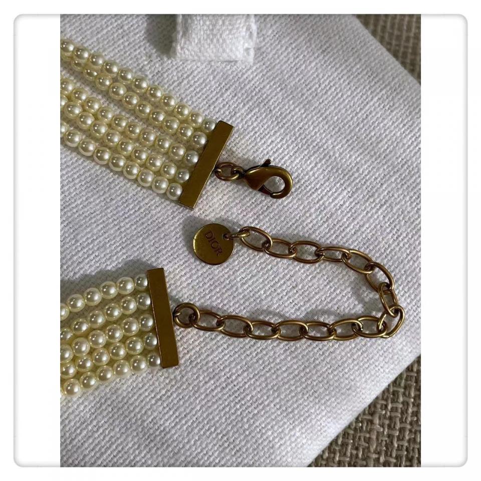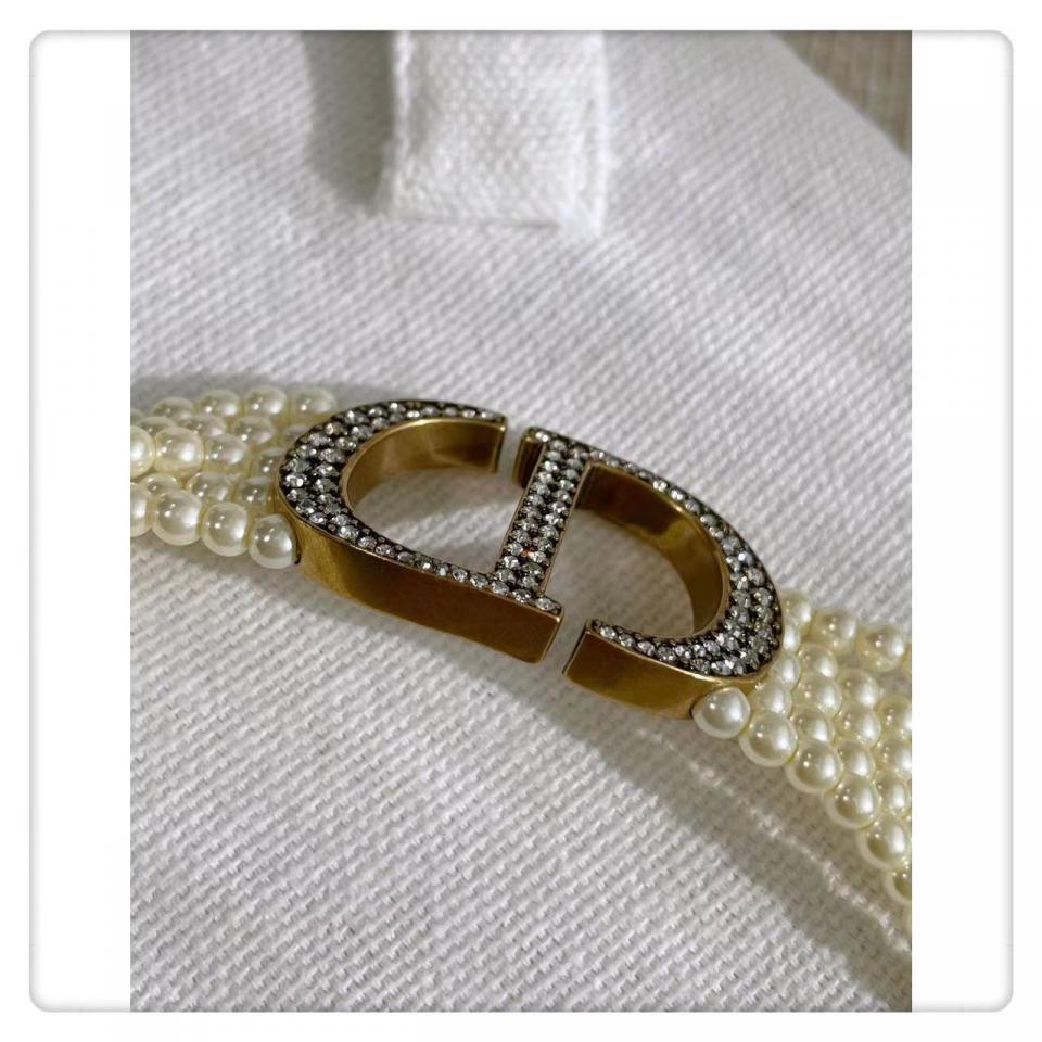 實際內容滿滿,整個秀場出鏡率超高的!珍珠的重疊,中間的主配件滿鑽CD字體非常的有現代感,給整體的項圈帶來一種時尚感!