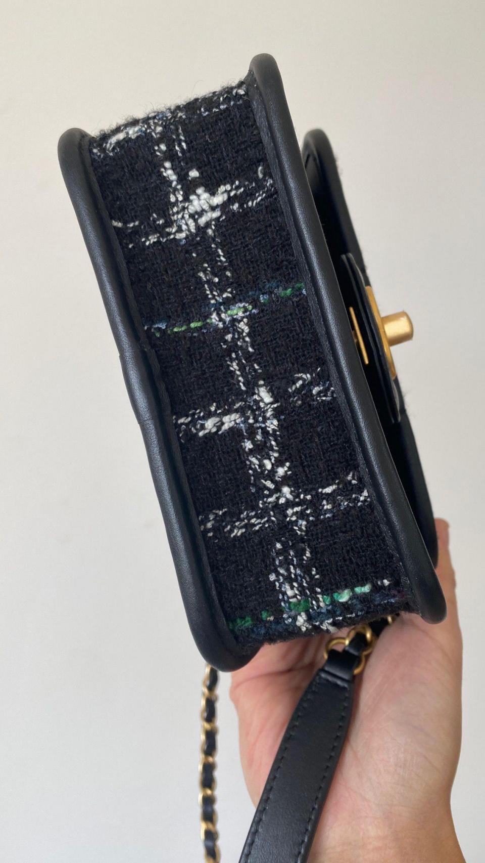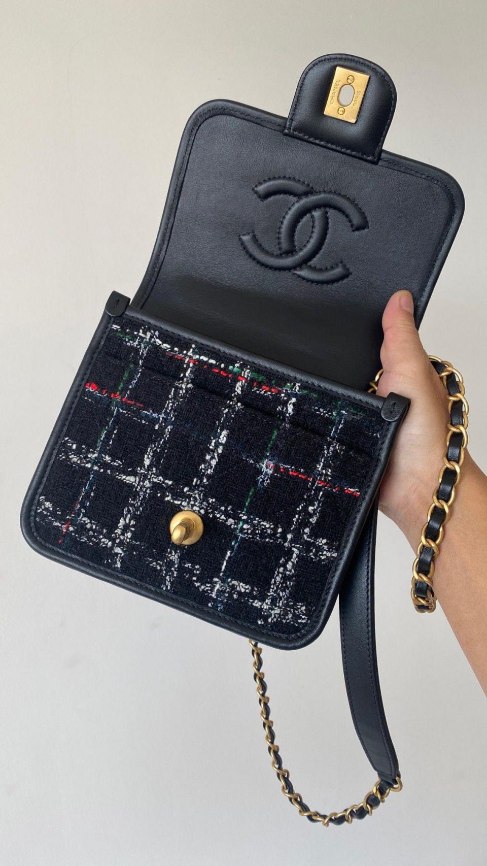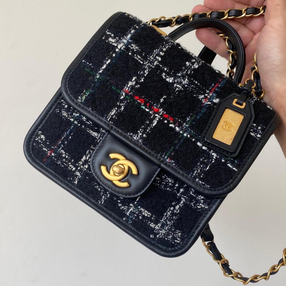 2022秋冬新品 C家22K銘牌手柄豆腐包(毛呢款黑色) 中古銘牌數計感