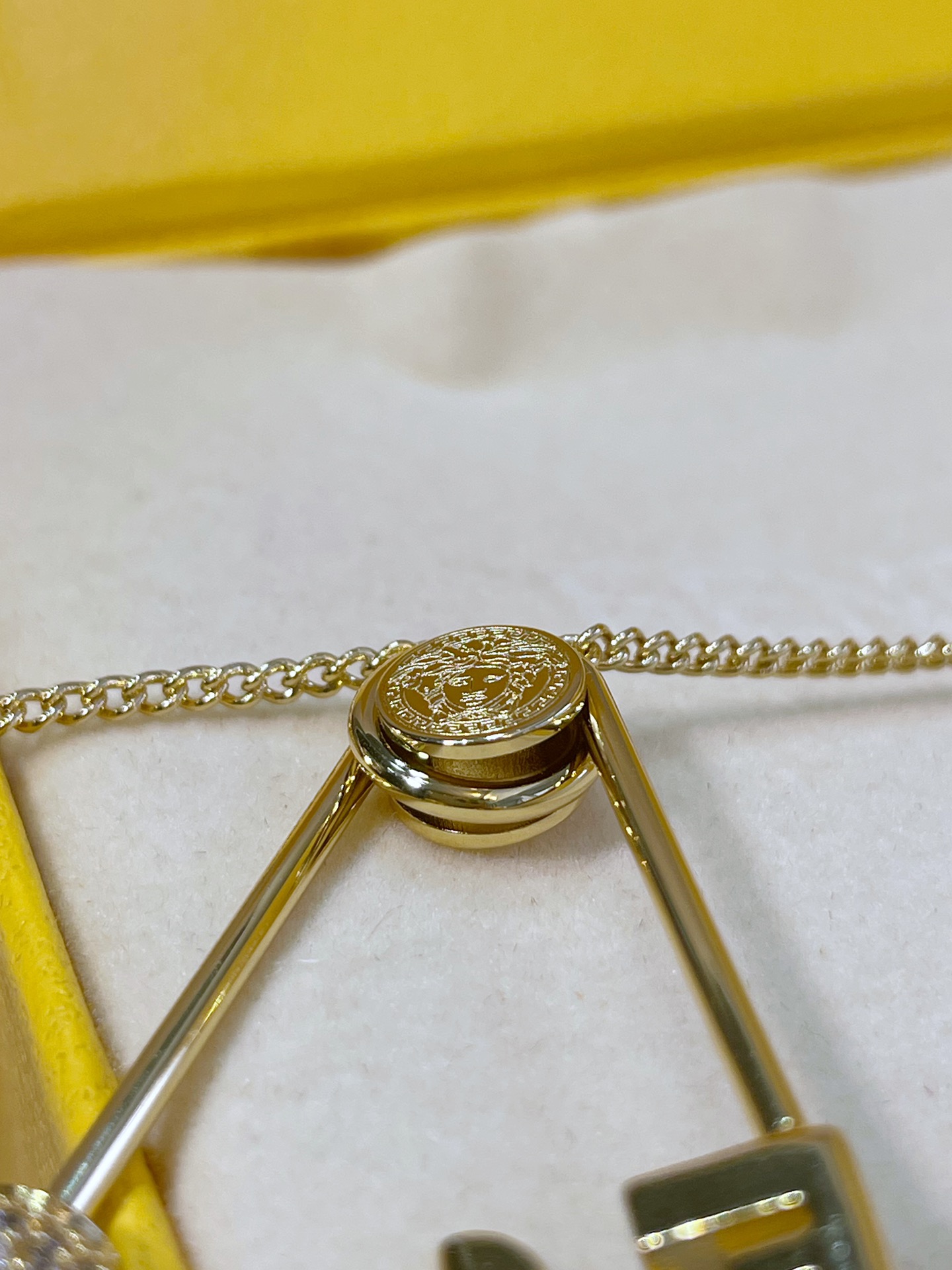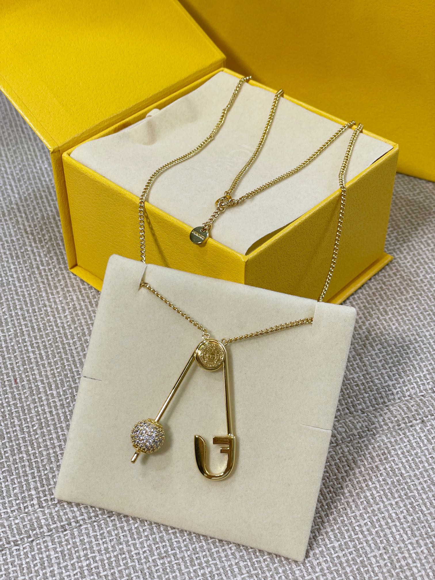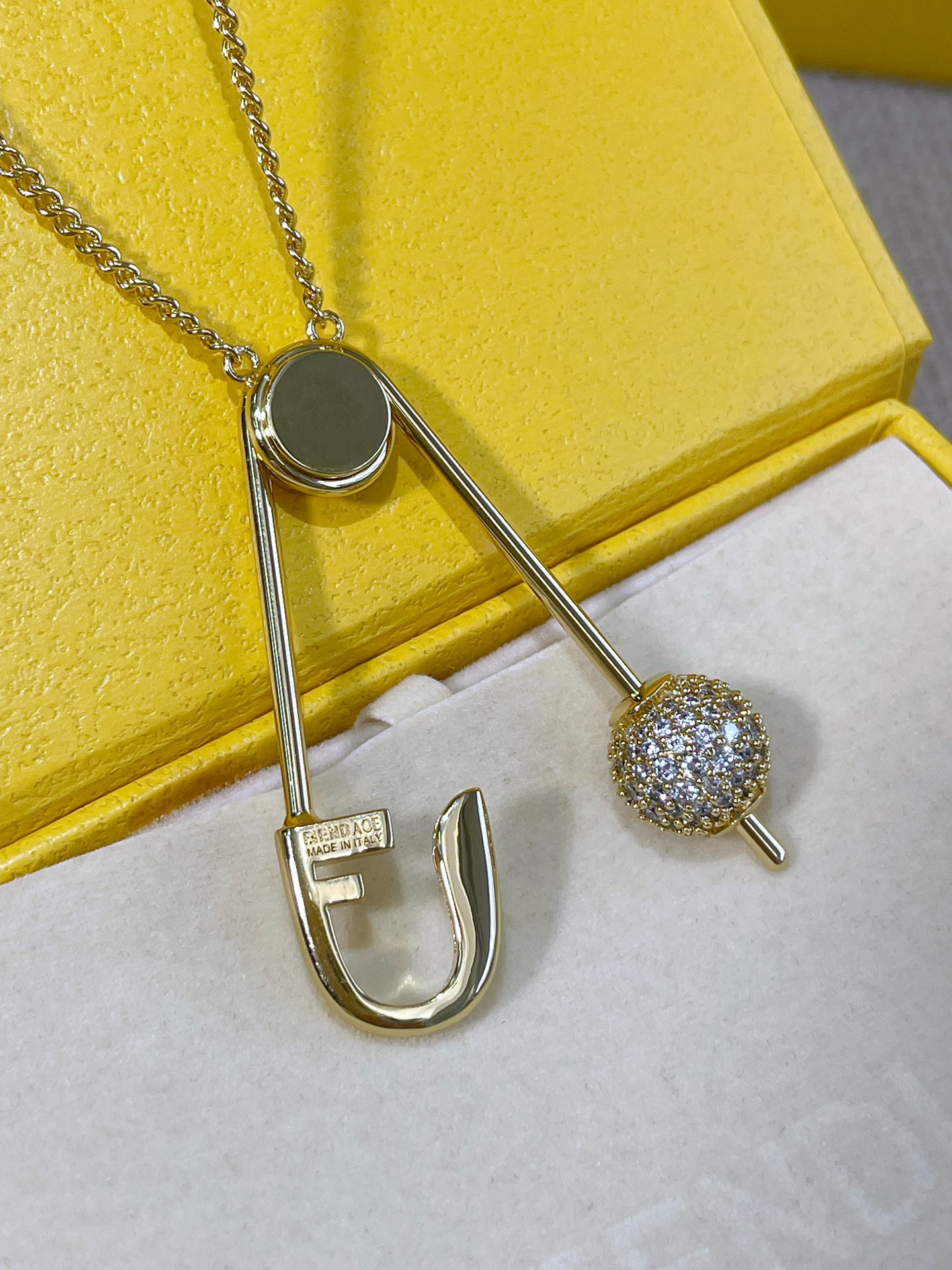 Vers與F家攜手合作的最新聯名配飾,將經典古典主義與時裝巧妙結合。簡約又經典,別針造型的吊墜,搭配閃耀的高碳鑽,低調中帶著奢華感。