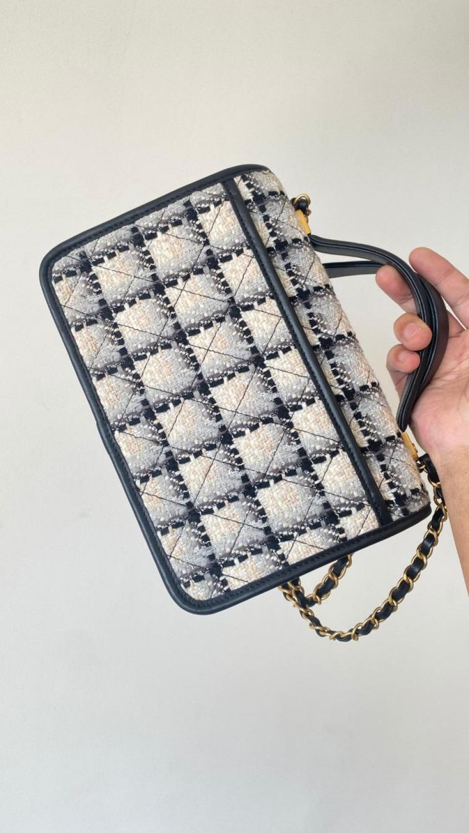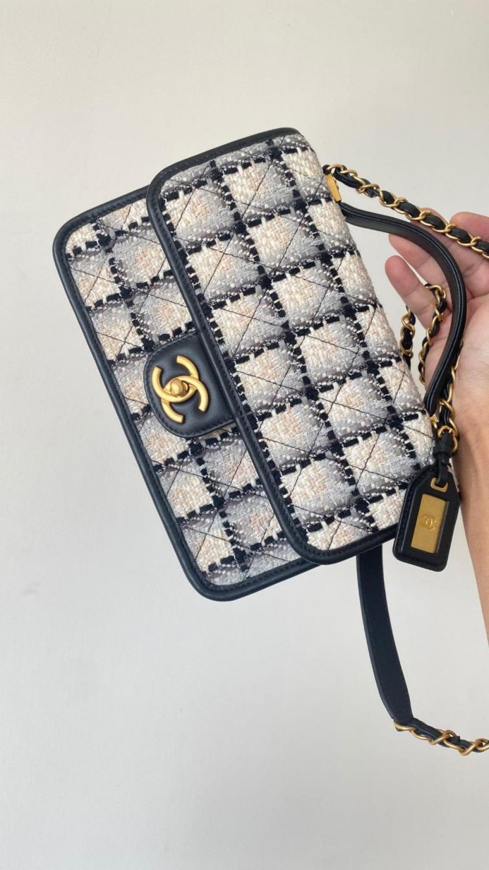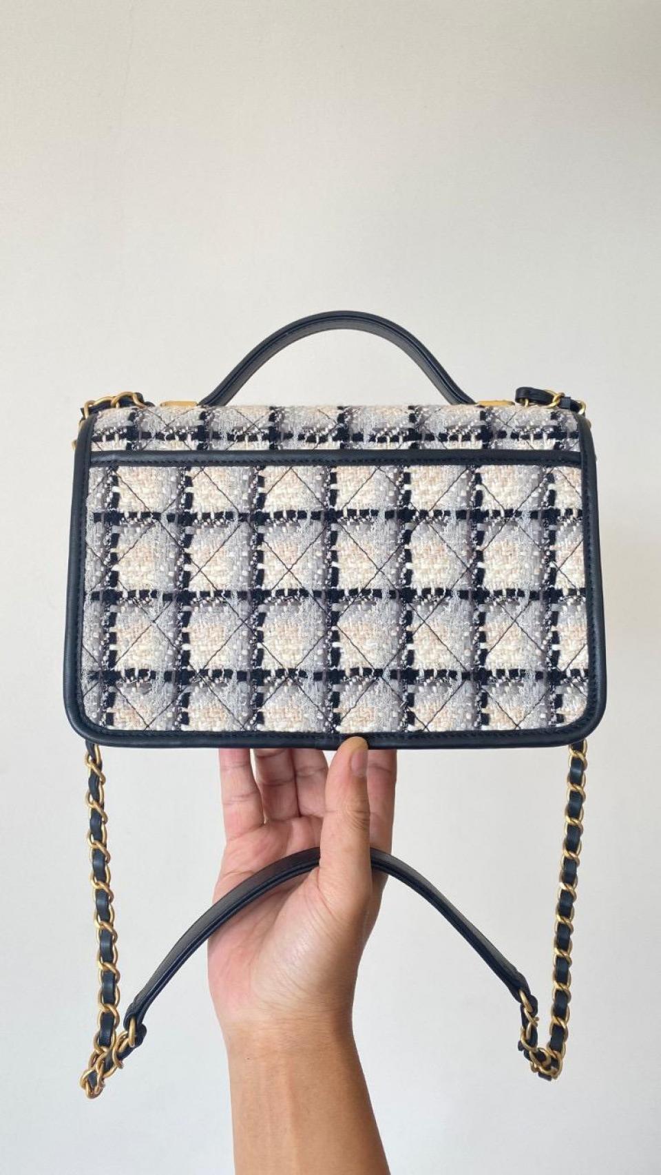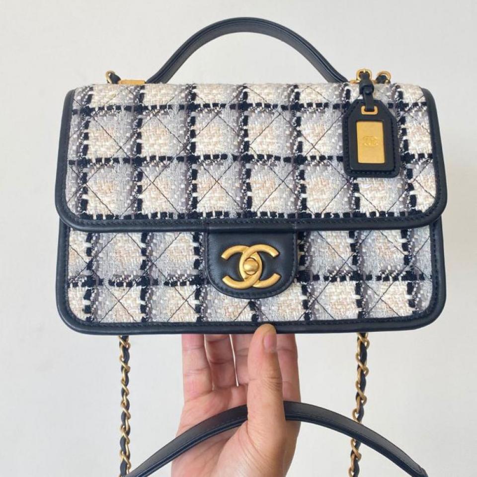 2022秋冬新品 C家22K銘牌手柄豆腐包(毛呢款白色大號) 中古銘牌數計感