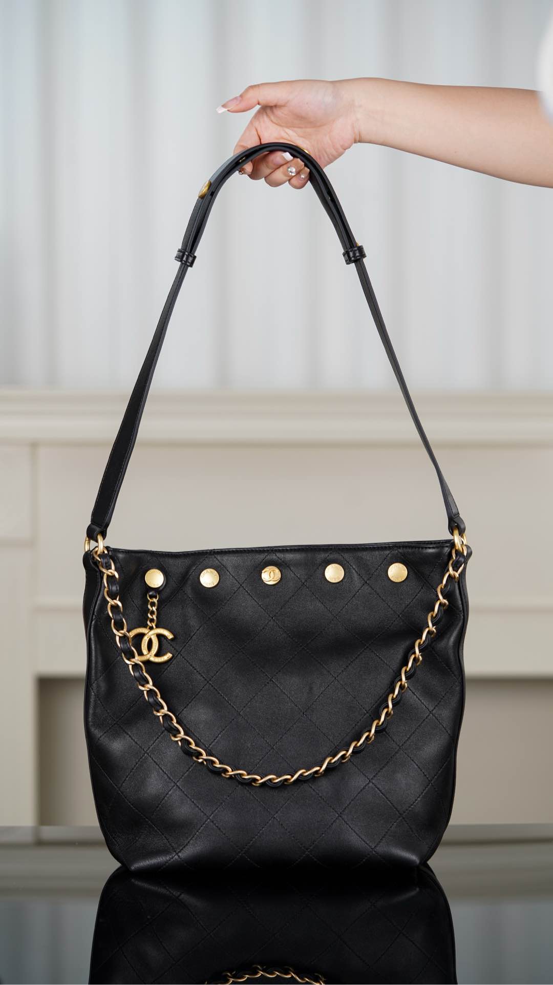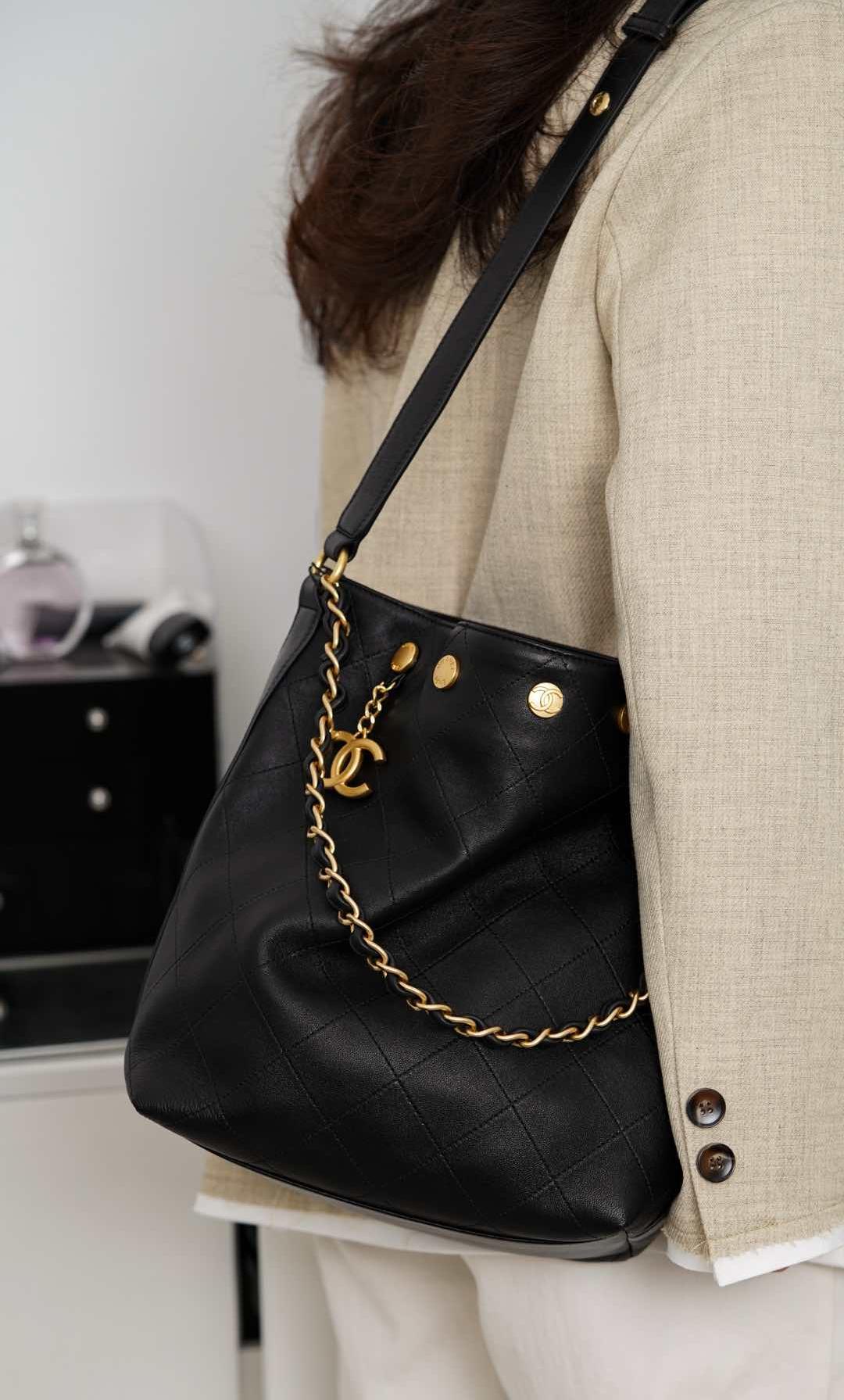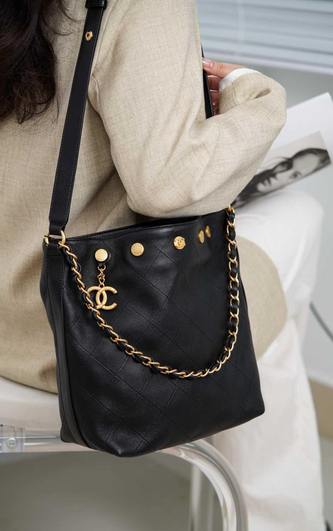 2025早春新品 C家 25P金幣系列Hobo 水桶包  黑金配色・復古與現代的完美交會