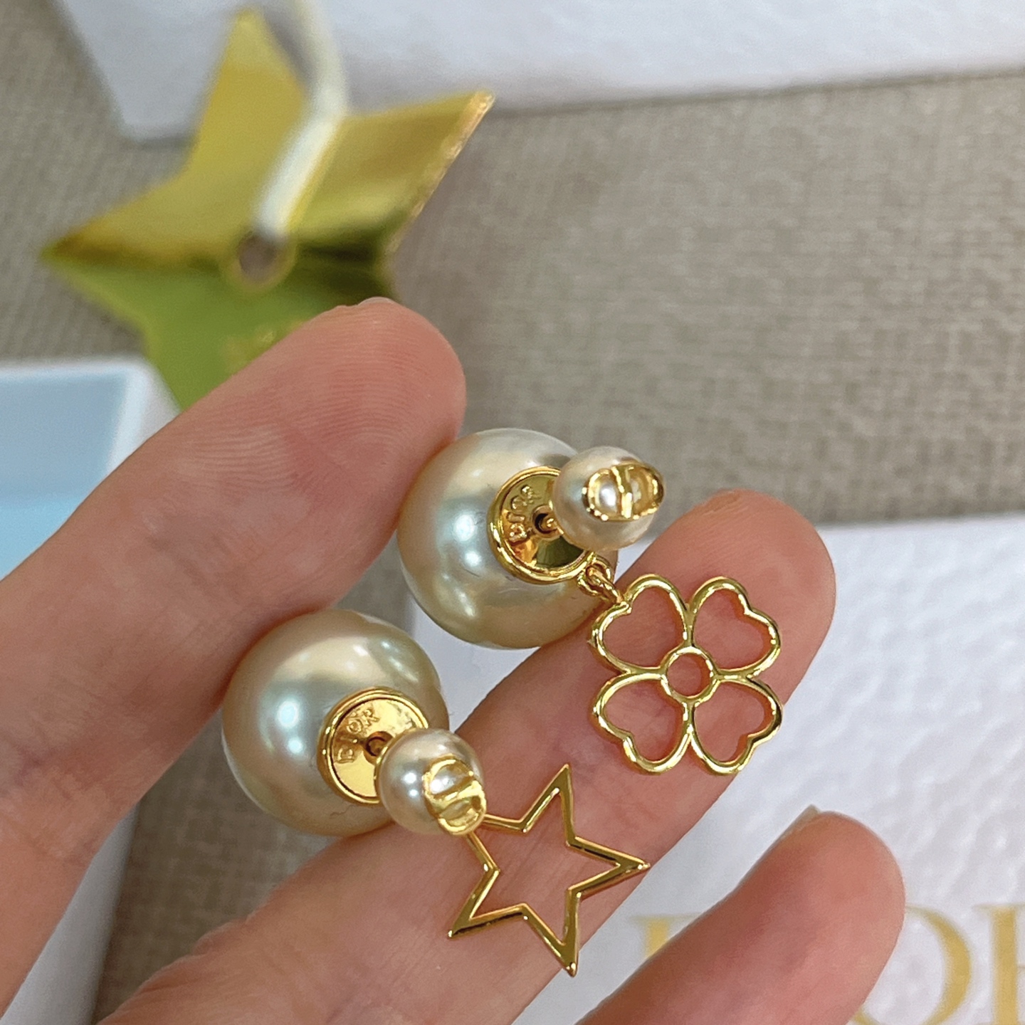 耳環採用經典「雙珠設計」,大小珍珠層次分明,小珠上還點綴著經典 CD 標誌,展現滿滿精緻質感。