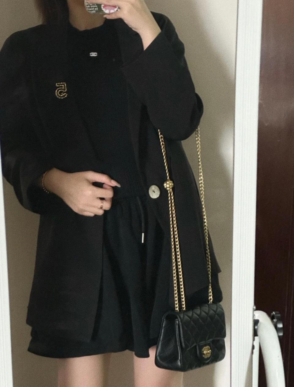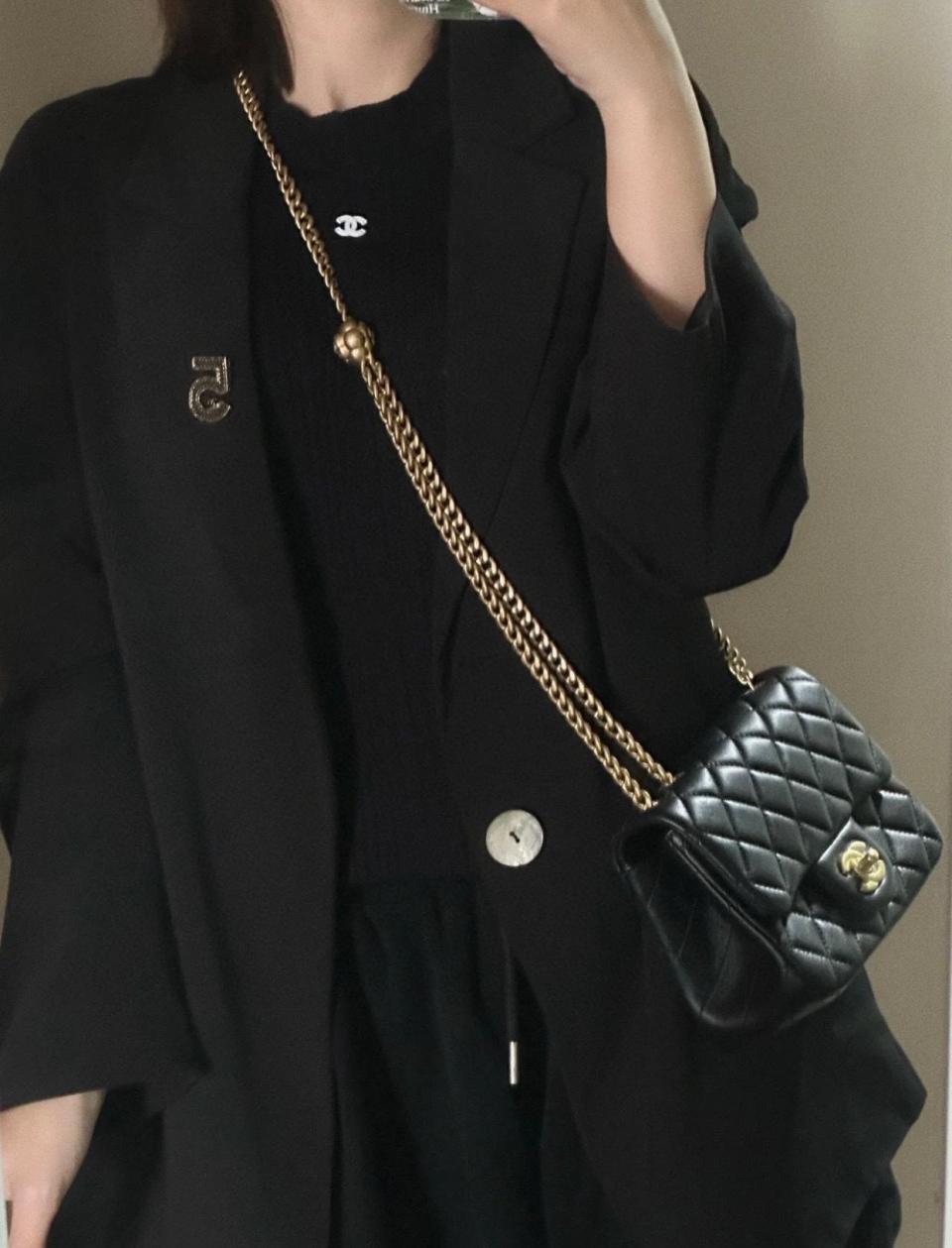 經典5號元素,用金邊虛線勾勒整個線條感,中間的粗皮紋又很好的映襯出金屬的質感,休閒帶點小復古,上身百搭個性時尚十足