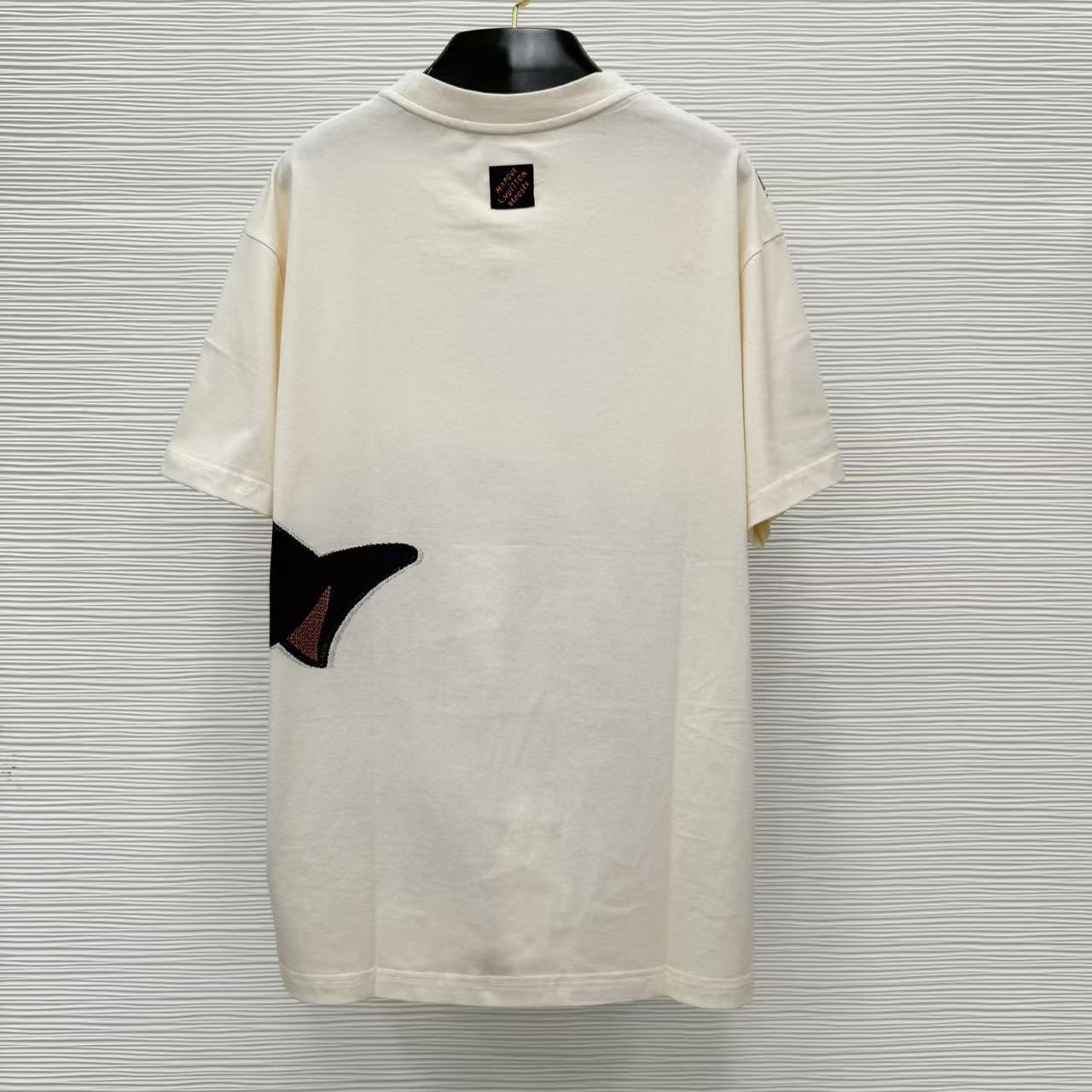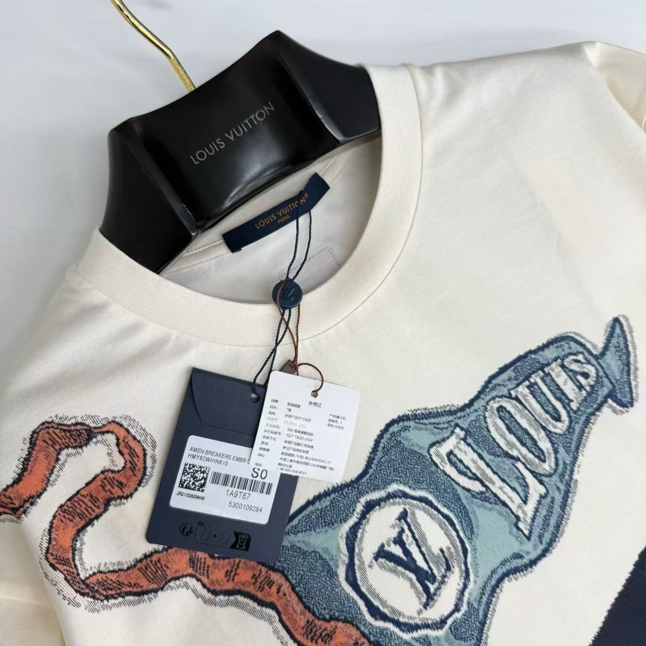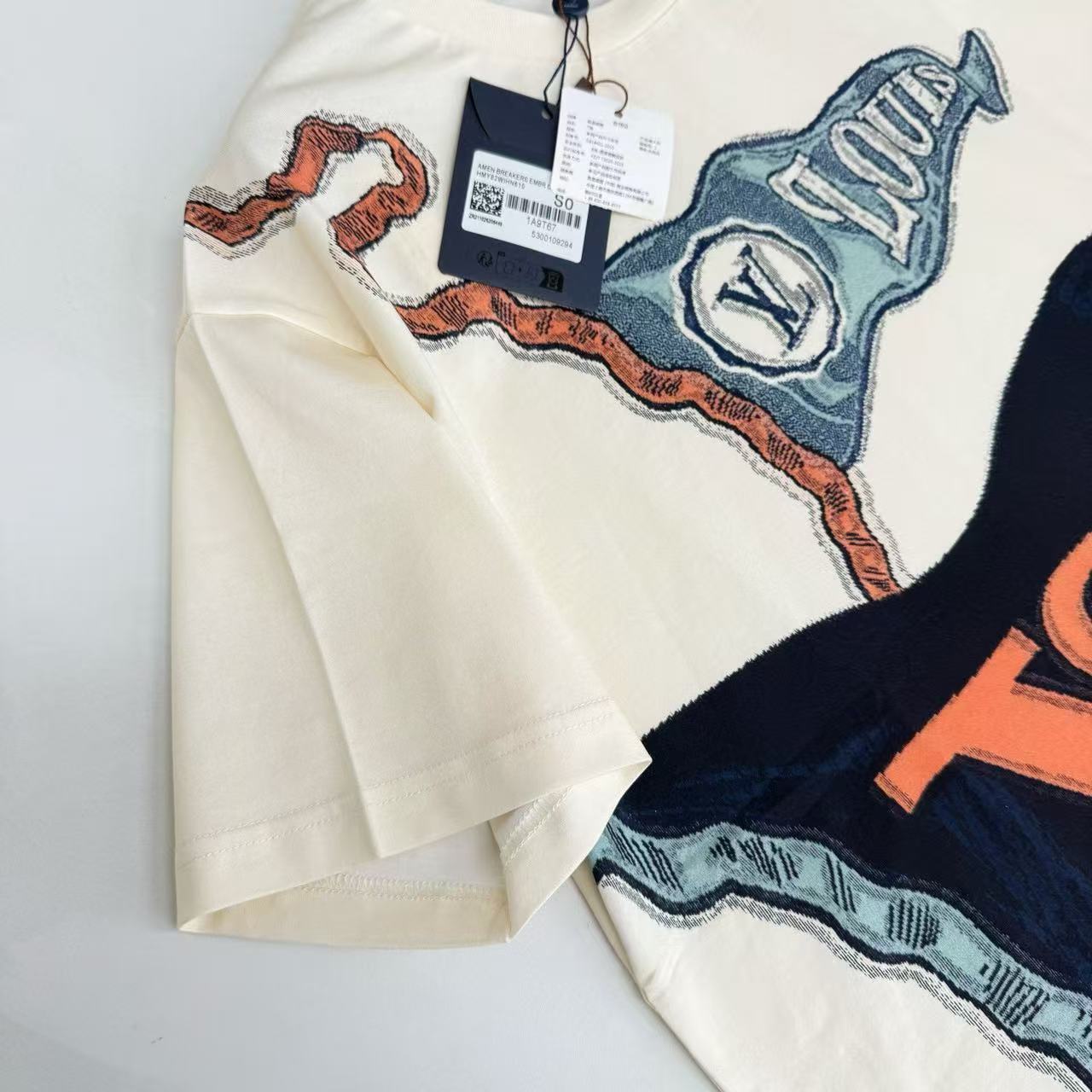 背面臂章: 背部則有織入了 Marque L.Vuitton Déposée 字樣的編織臂章,這是向品牌歷史致敬的標誌性細節,讓休閒的 T 恤也充滿濃厚的品牌精神。