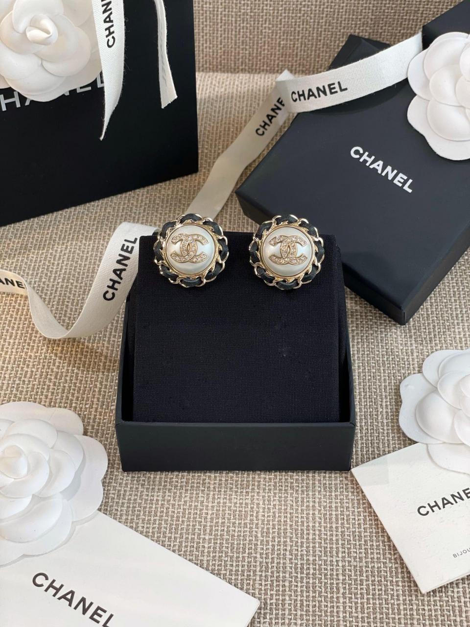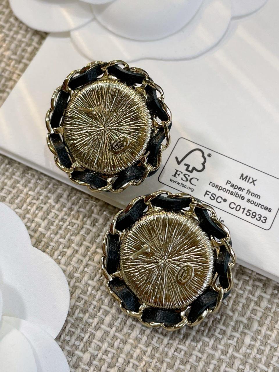 2023春夏 C家圓形穿皮珍珠圓耳釘