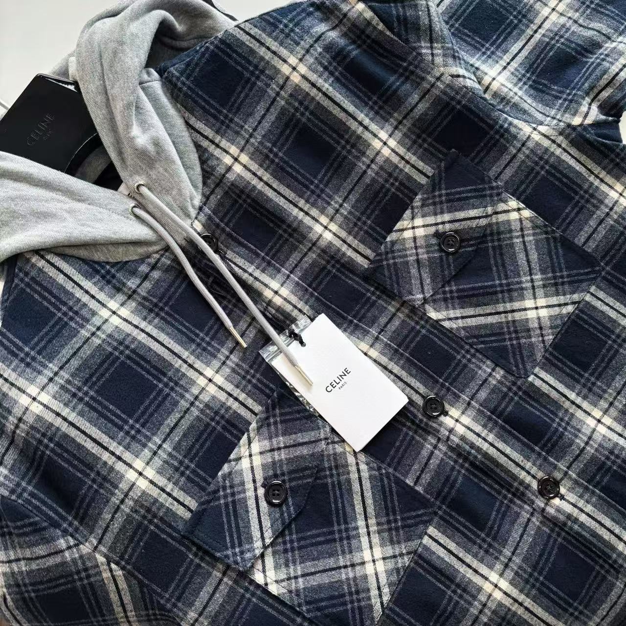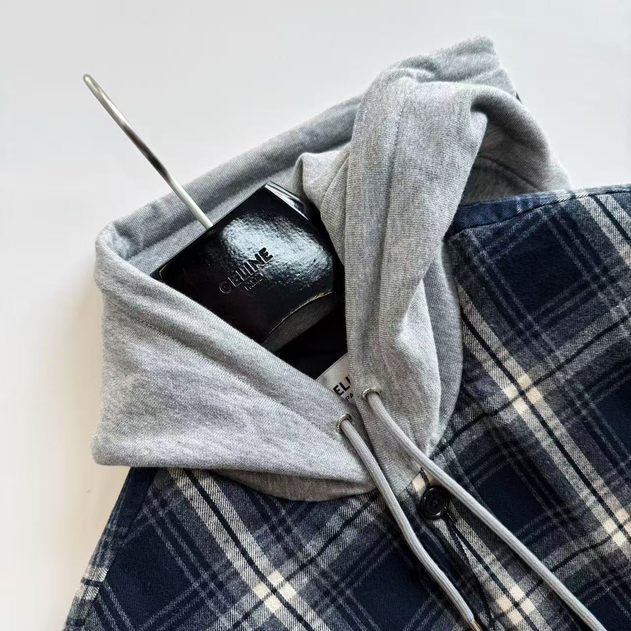 2025早秋新品 CE家 格紋羊絨連帽外套
