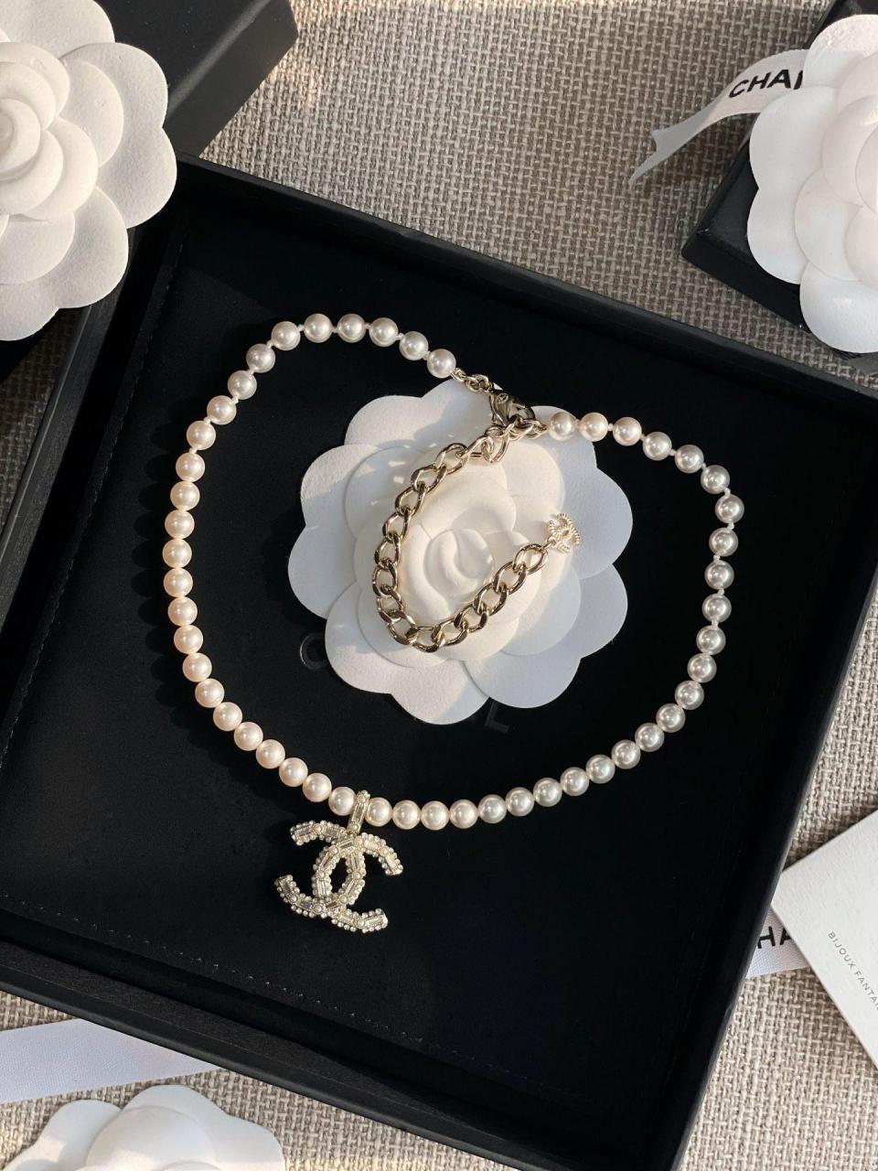 2022秋冬 C家水鑽雙C珍珠項鍊
