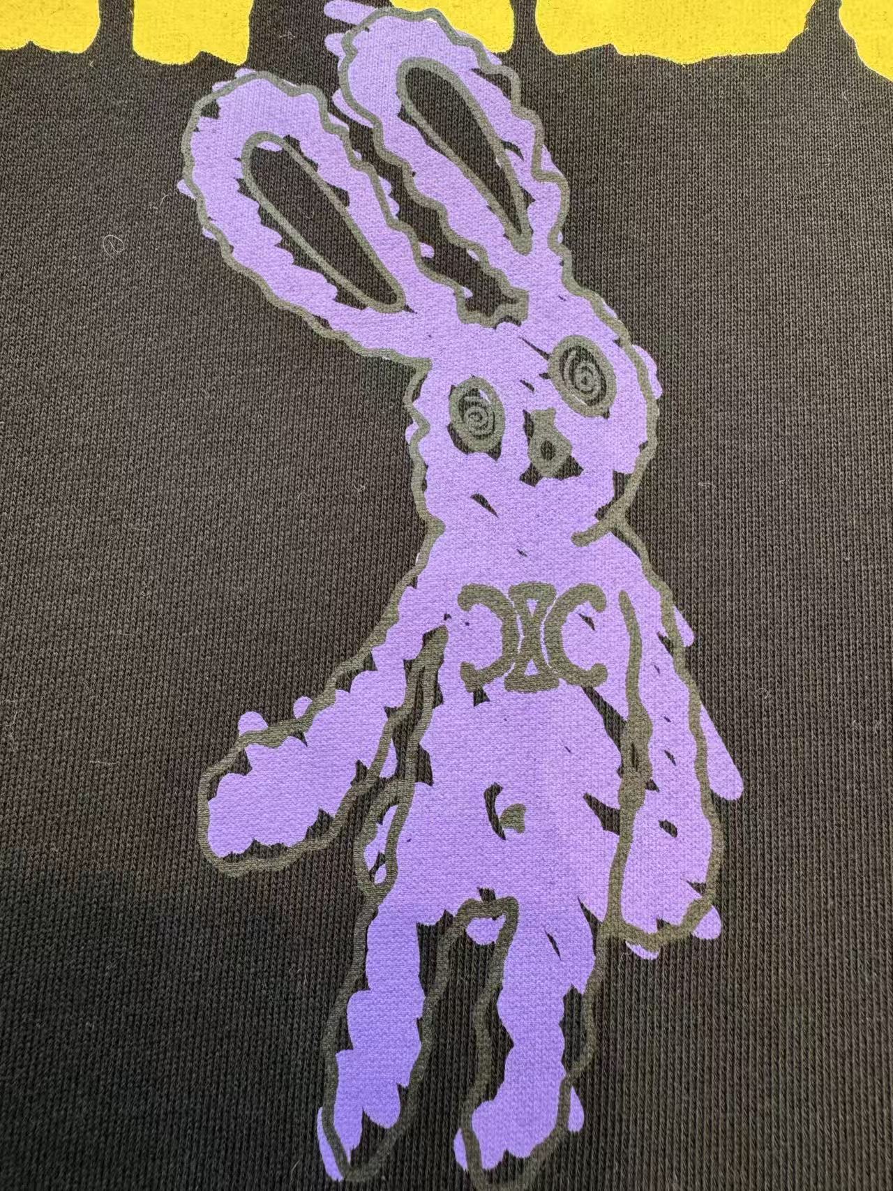這件根本是「長大後還能合法可愛」的天花板,遠看就是一件超乾淨的黑衛衣,近看正面那隻紫色毛絨兔子+黃色LIMBO大字直接把童趣跟叛逆感拉滿,隨便一穿就自帶巴黎街頭藝術家的隨性貴氣,甜中帶壞,誰穿誰是全場最吸睛的那個~