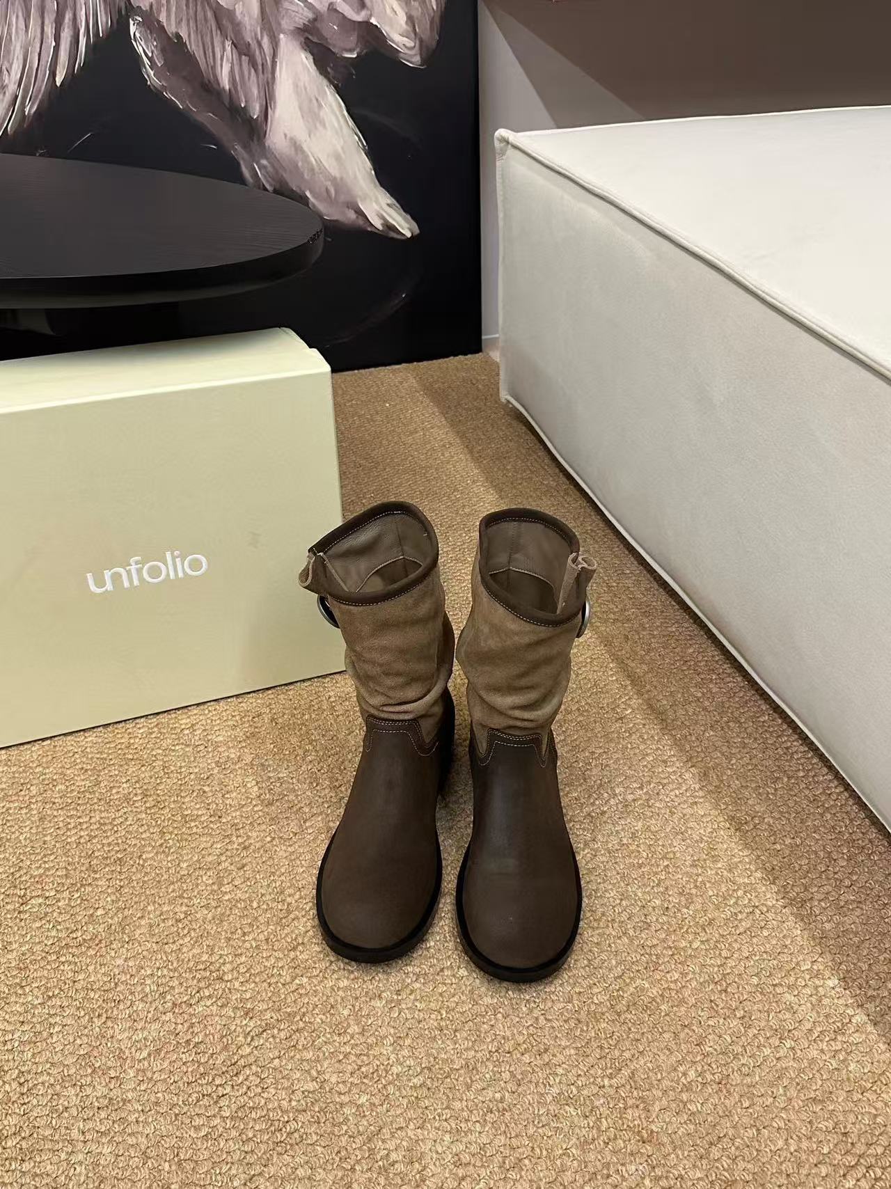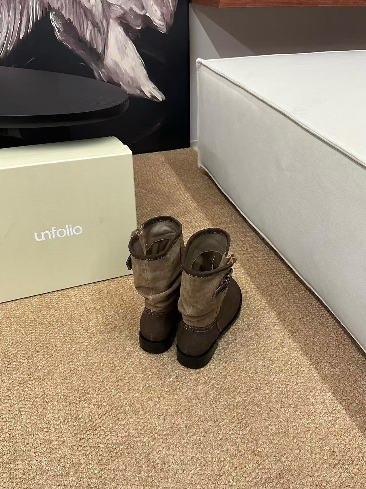 去除繁複裝飾,專注於材質、結構與廓形的純粹表達,這雙短靴不僅是當季單品,更是一件能伴隨你多年、隨時光淬鍊出獨特韻味的現代經典。