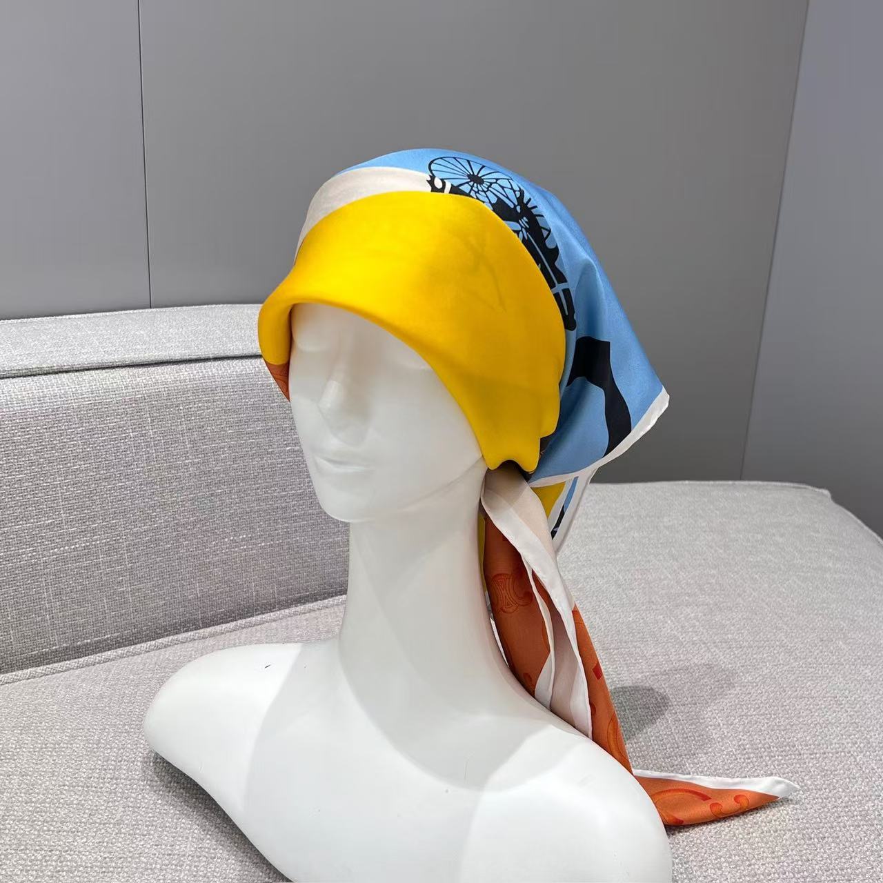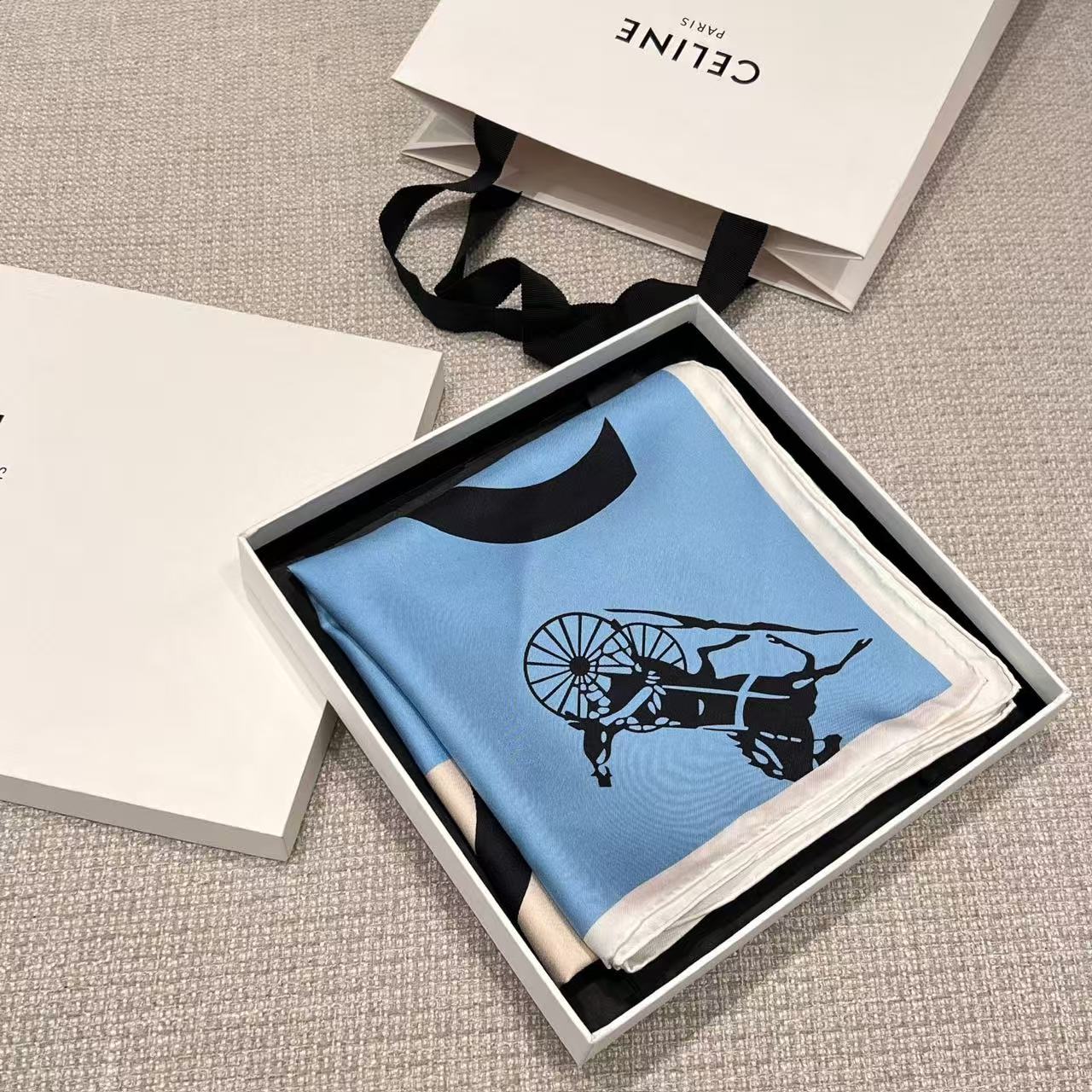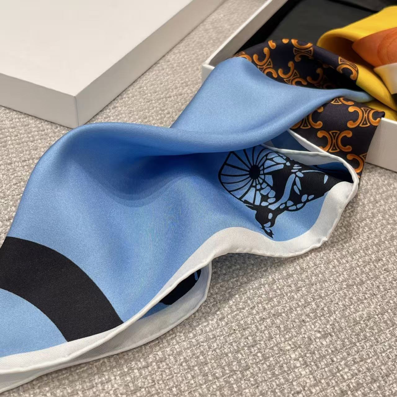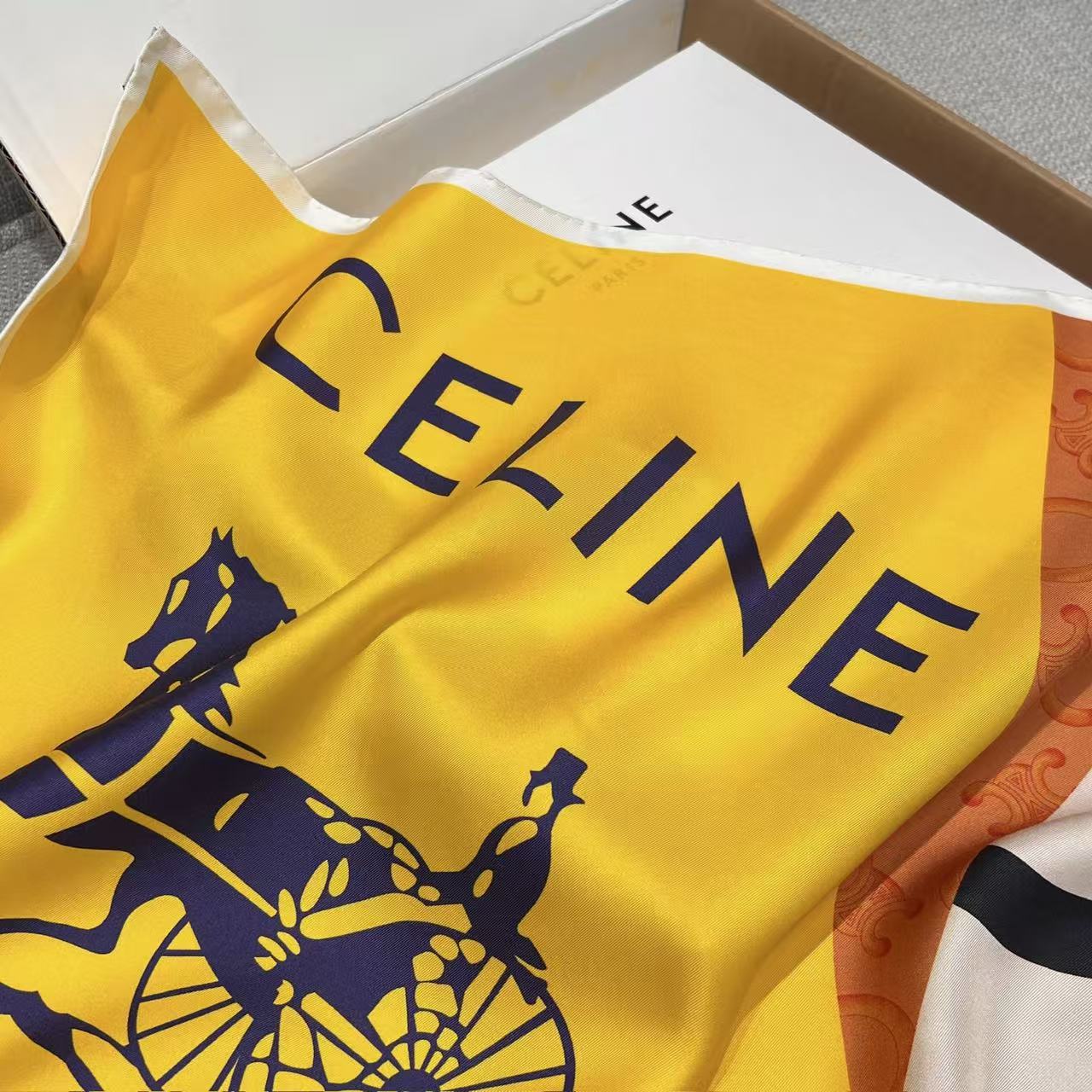 在 Hedi Slimane 掌舵下的品牌,始終致力於挖掘品牌創始人 Céline Vipiana 那份深植於馬術世界的先鋒精神。這次分享的 2026 春夏(26SS)旗幟絲巾,以經典的藍黃撞色演繹出極具張力的幾何美學。