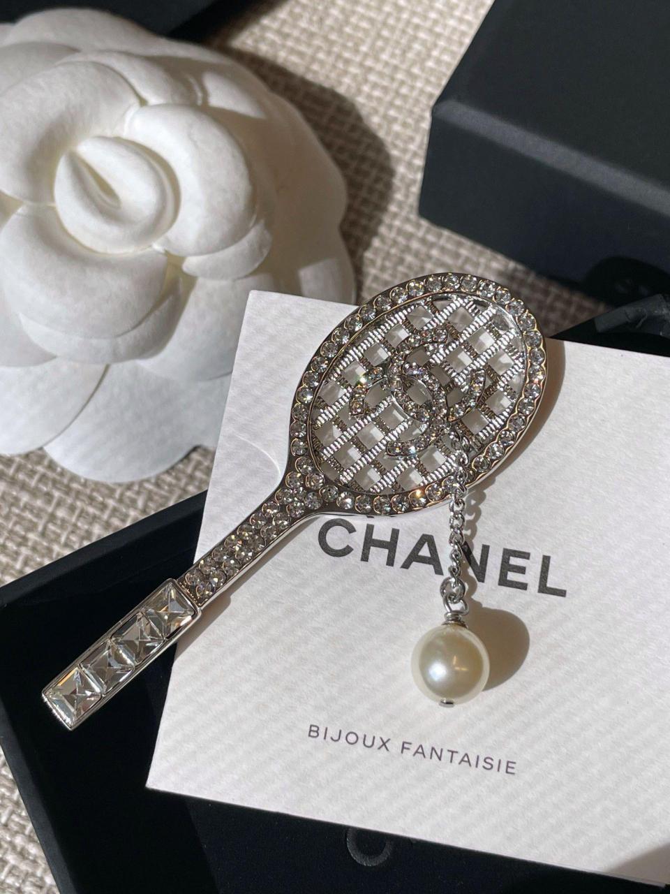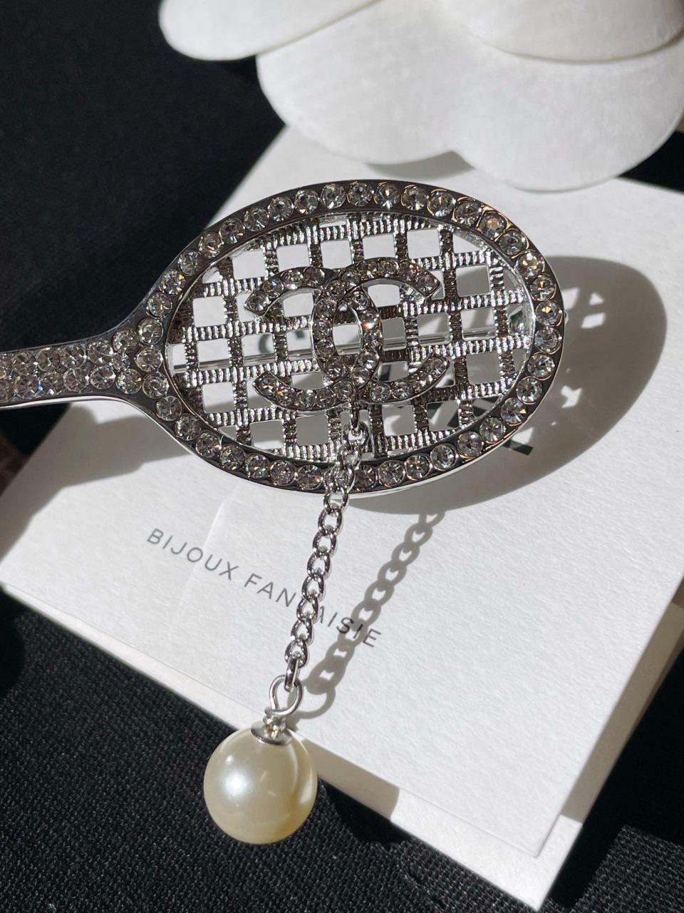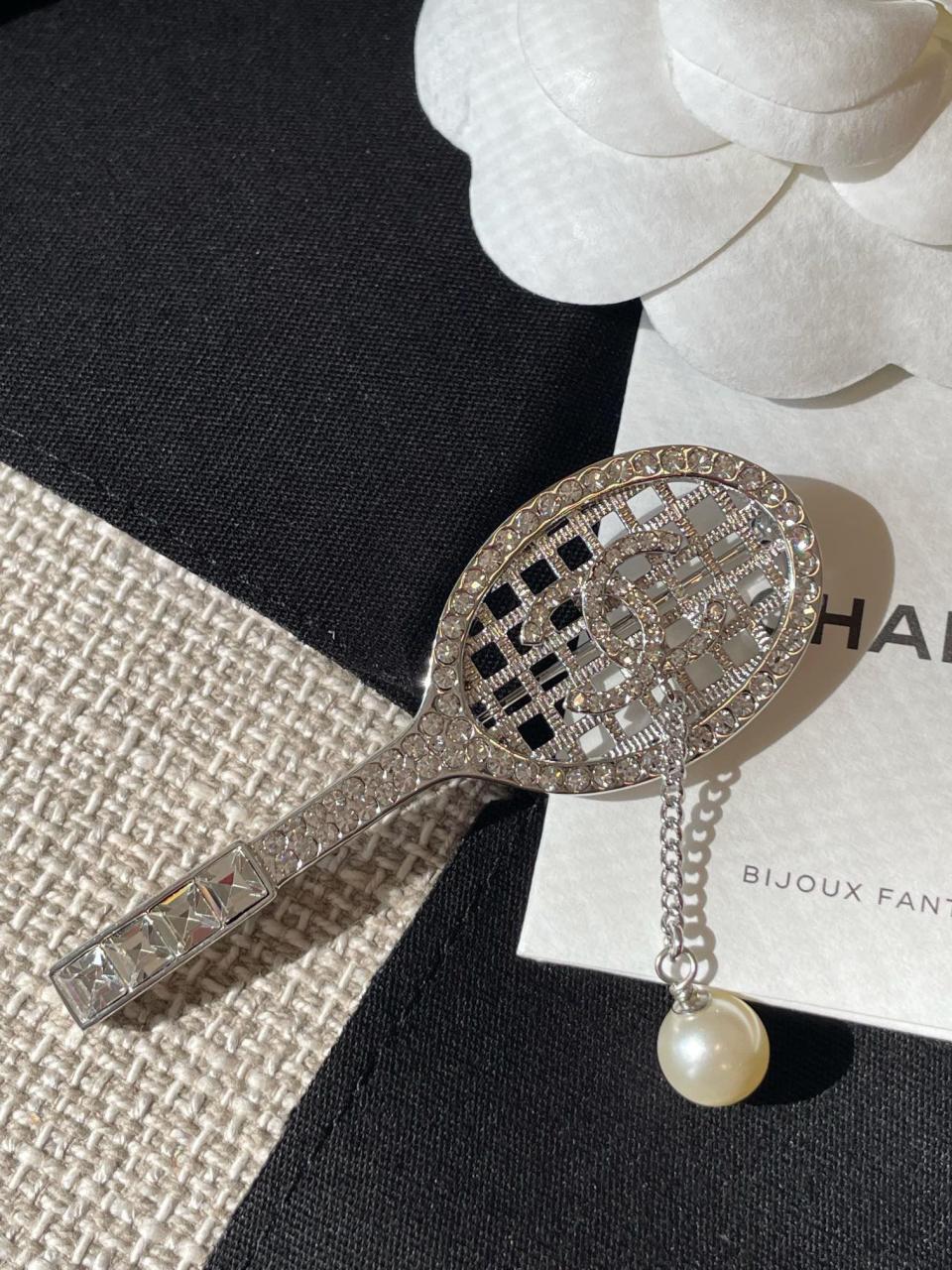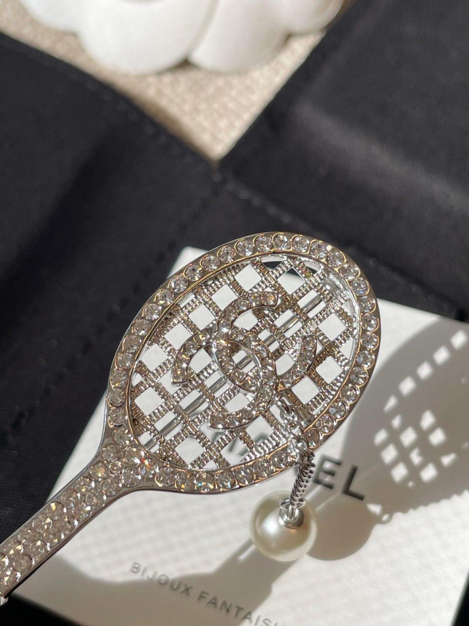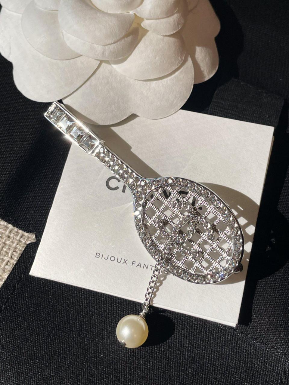 網球拍胸針,用圓鑽方鑽點綴,黃銅材質,再用一顆施華洛世奇珍珠作為網球,特別特別的有創意驚喜!