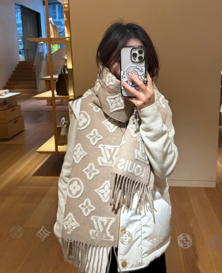 柔軟的羊毛混紡材質,配上經典Monogram圖騰的3D立體效果,保暖又時髦,讓你從頭到腳都散發出優雅氣息。