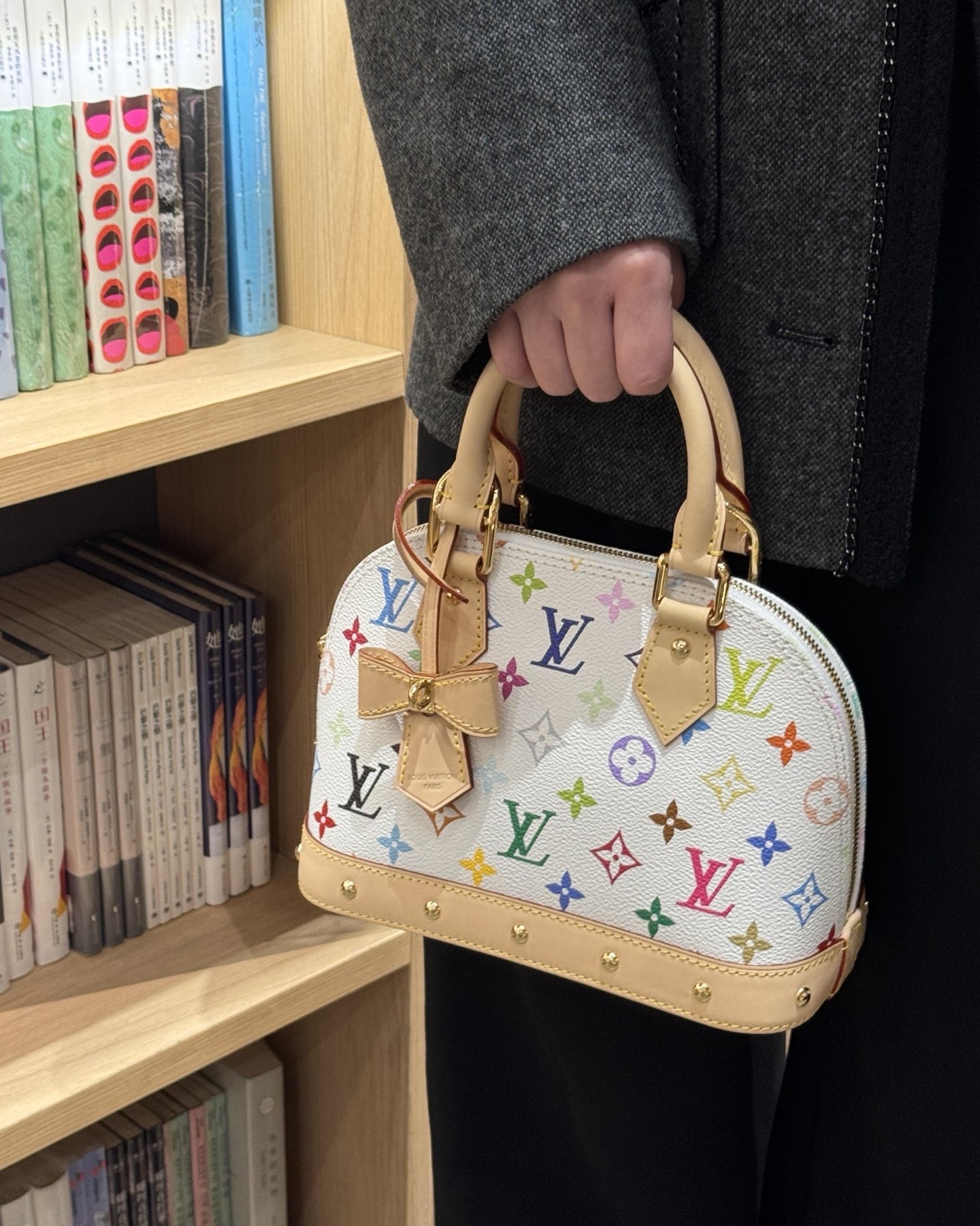 ALMA BB 本身就是 LV 家族裡最具代表性的包款之一,以簡潔弧形輪廓著稱,搭配村上隆的經典白三彩設計,讓這只包不僅保有原本的優雅氣質,又多了分俏皮可愛的藝術調性。