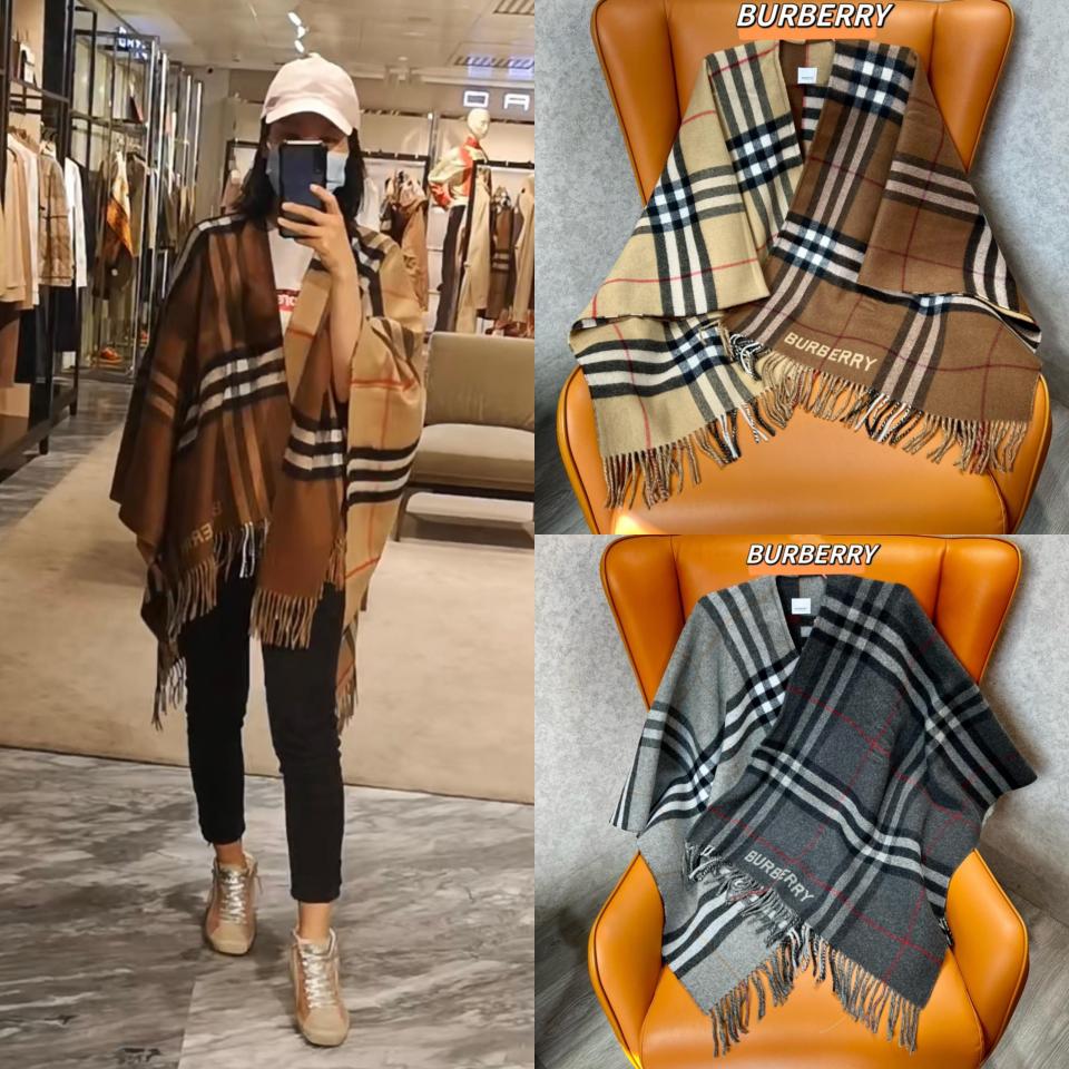2022秋冬新品 B家雙色拼接格紋斗篷 秋冬時尚單品 不可錯過