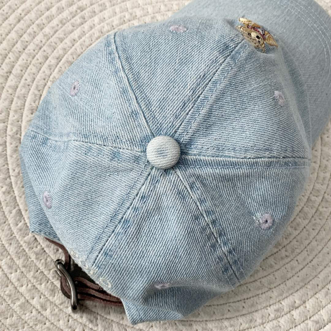 細節:字母刺繡搭配精緻小熊圖案,細膩針法展現高質感,帽型工整,經典百搭。