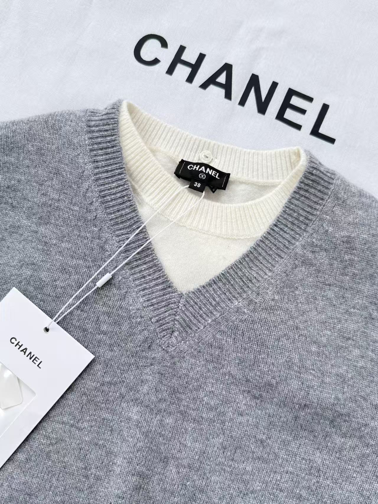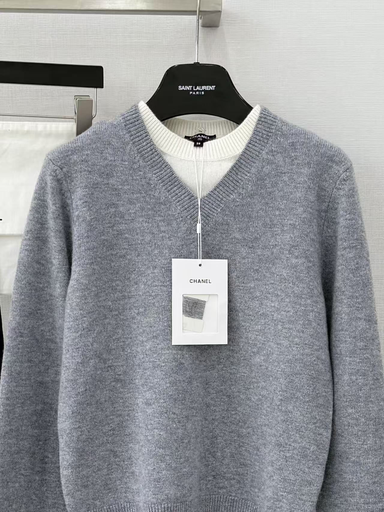 2026早春新品 C家 假兩件疊穿針織毛衣