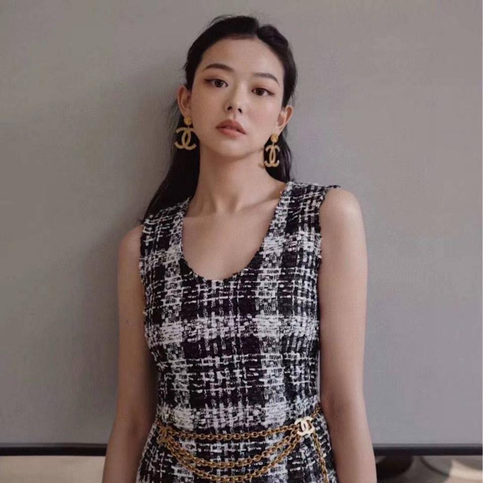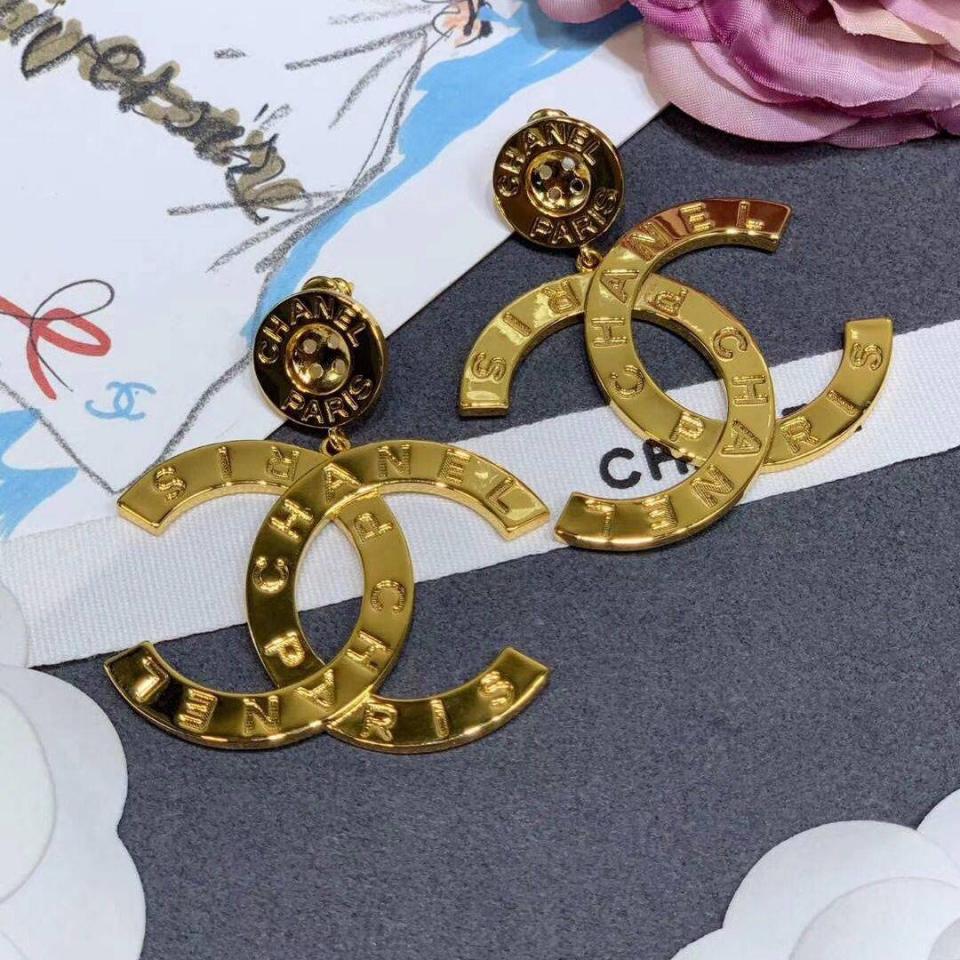 20初秋 新款 復古鈕扣大雙C耳環 神仙顏值 明星劉雯同款