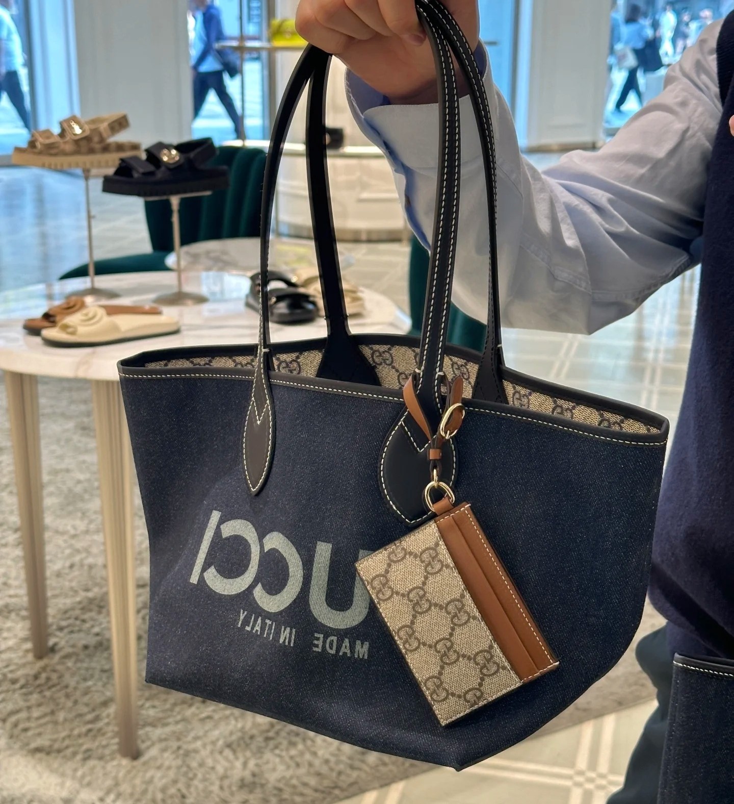 經典 GG 丹寧與 Supreme 帆布搭配,兼具品牌感與街頭氛圍