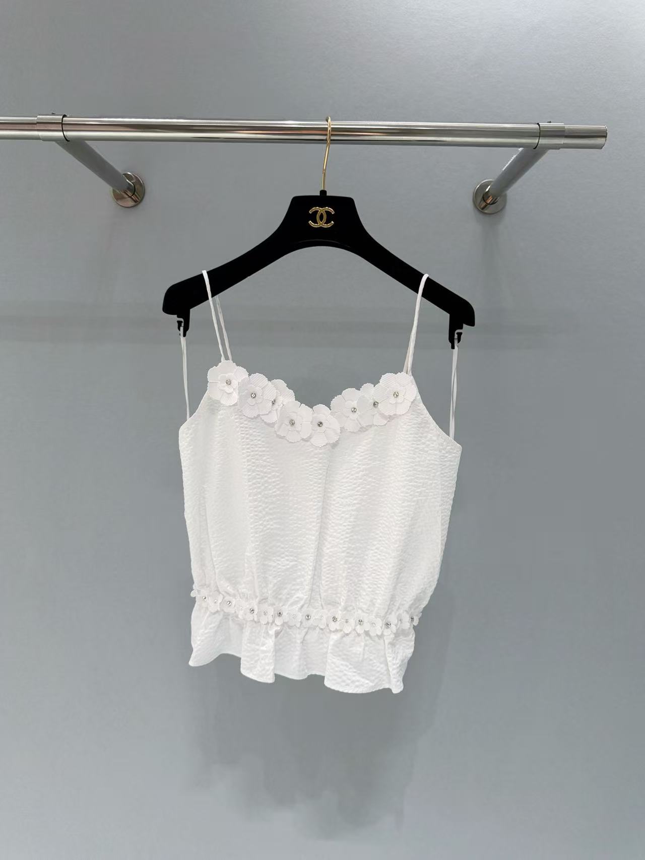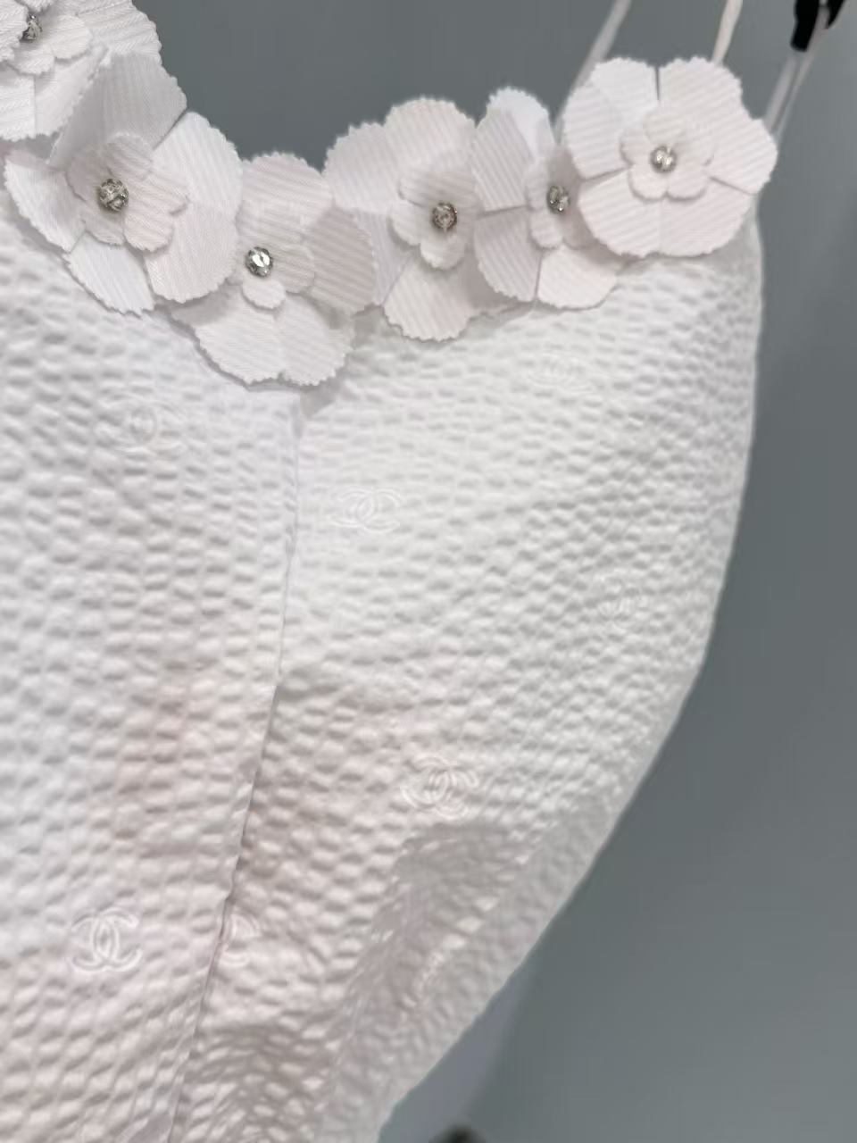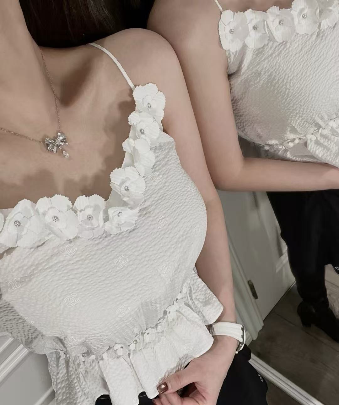 它不是普通的小背心,材質中巧妙融入了 雙 C 提花,細看會有非常高級的立體紋理,讓純白色系也層次感十足。