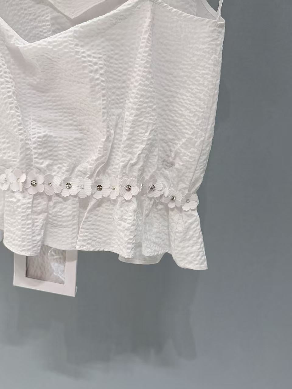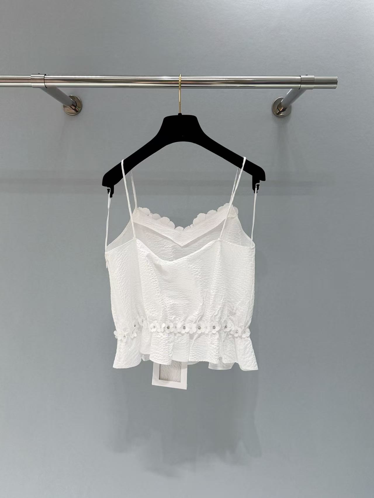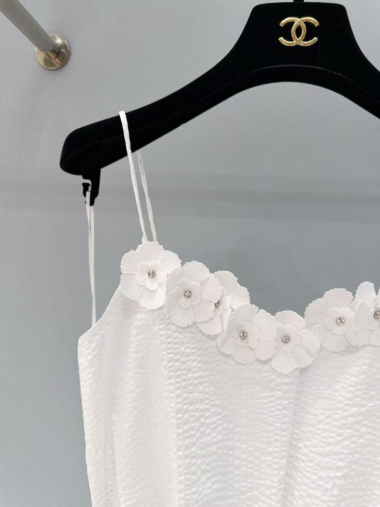 它不是普通的小背心,材質中巧妙融入了 雙 C 提花,細看會有非常高級的立體紋理,讓純白色系也層次感十足。