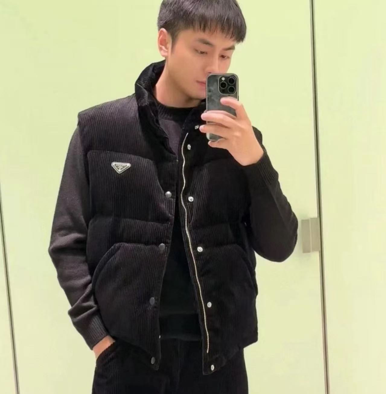 2025早秋新品 P家 燈心絨三角標logo羽絨背心