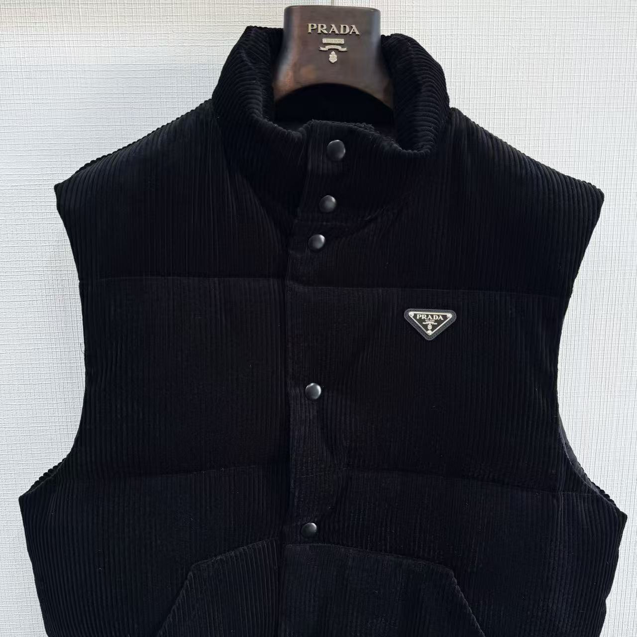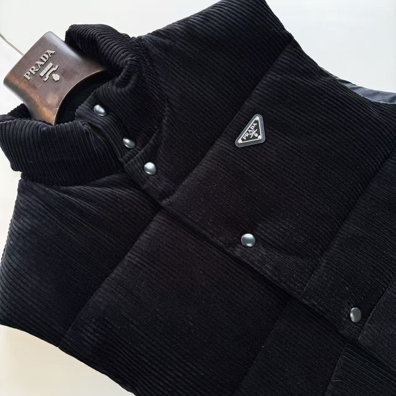 P家 燈心絨三角標logo羽絨背心