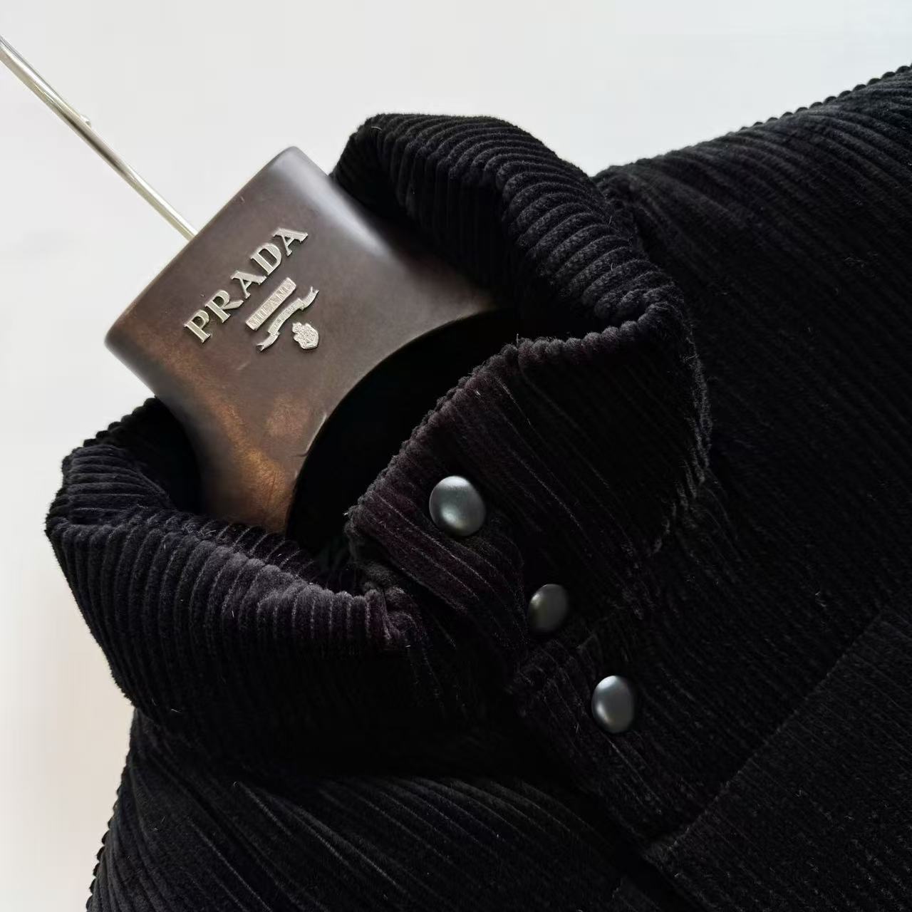 外層採用全棉 8*8 燈芯絨,經過活性染色工藝,色澤飽滿且達到固色黑級別,耐洗不褪色,復古韻味十足。內填 170g 90 白鴨絨,填充均勻蓬鬆,保暖力滿分卻不壓身。口袋章仔以超纖皮料打底,搭配鋁合金浮雕車床刻製的立體字母,細節放大看都無可挑剔,後期還手工點綴黑色鋼琴烤漆封釉,閃耀又耐看。前幅四合扣走霧槍色面扣底扣,低調中透著精緻工藝。