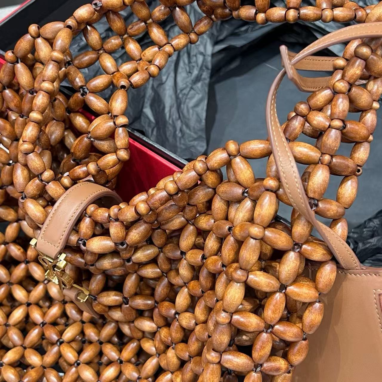 ・包身採用天然木珠手工編織,紋理自然、富有觸感