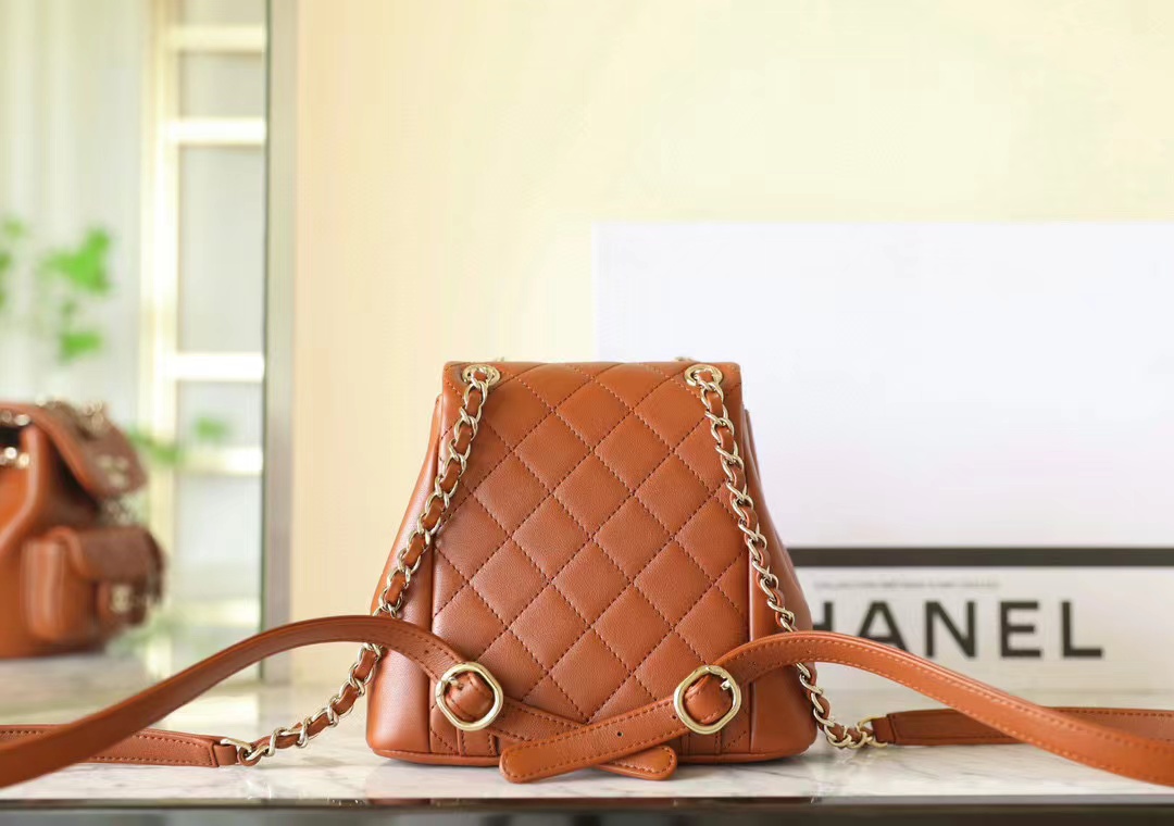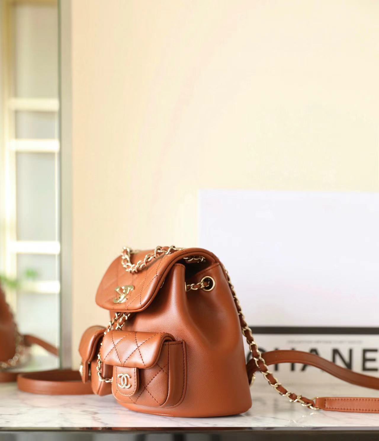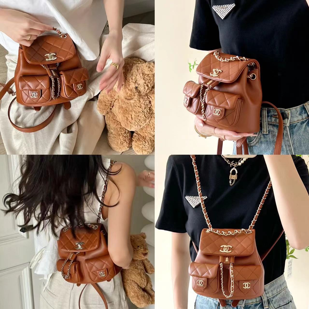 2023秋冬 C家23P雙口袋復古背包(巧克力色小號)
