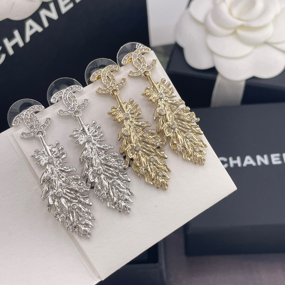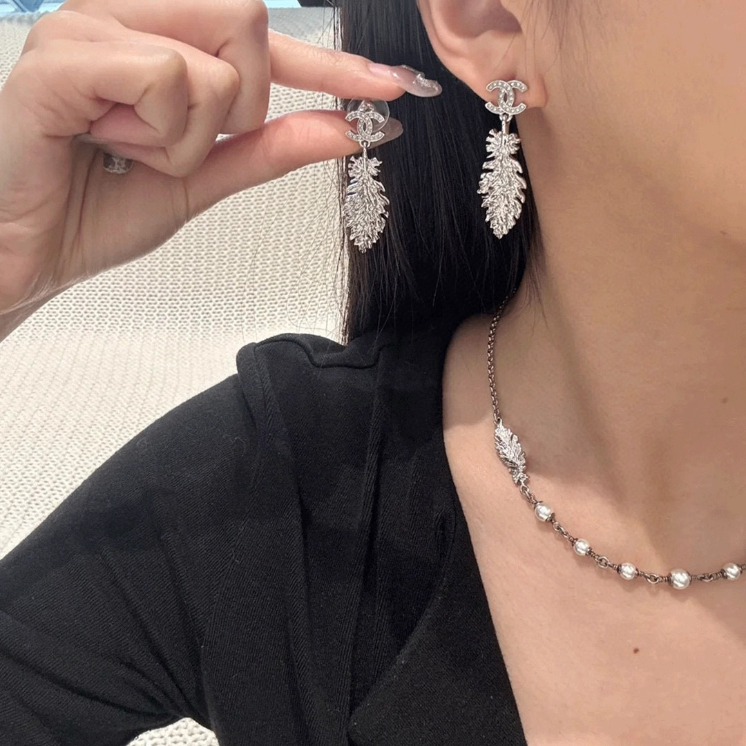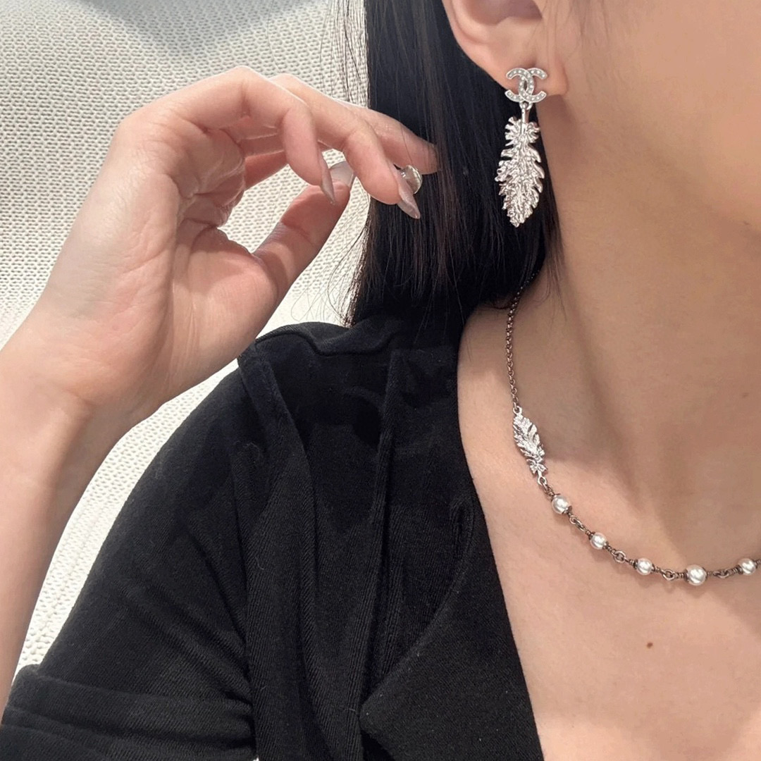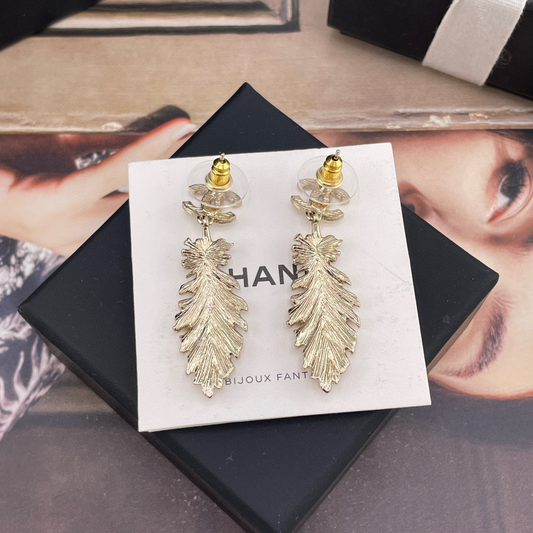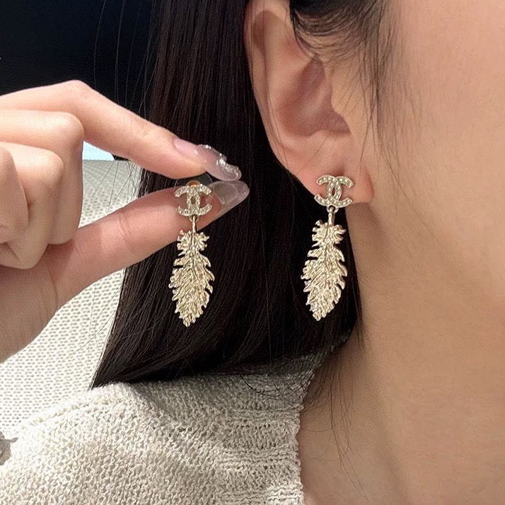 2025春夏新品 C家 雙C吊羽毛耳環|絕美新作