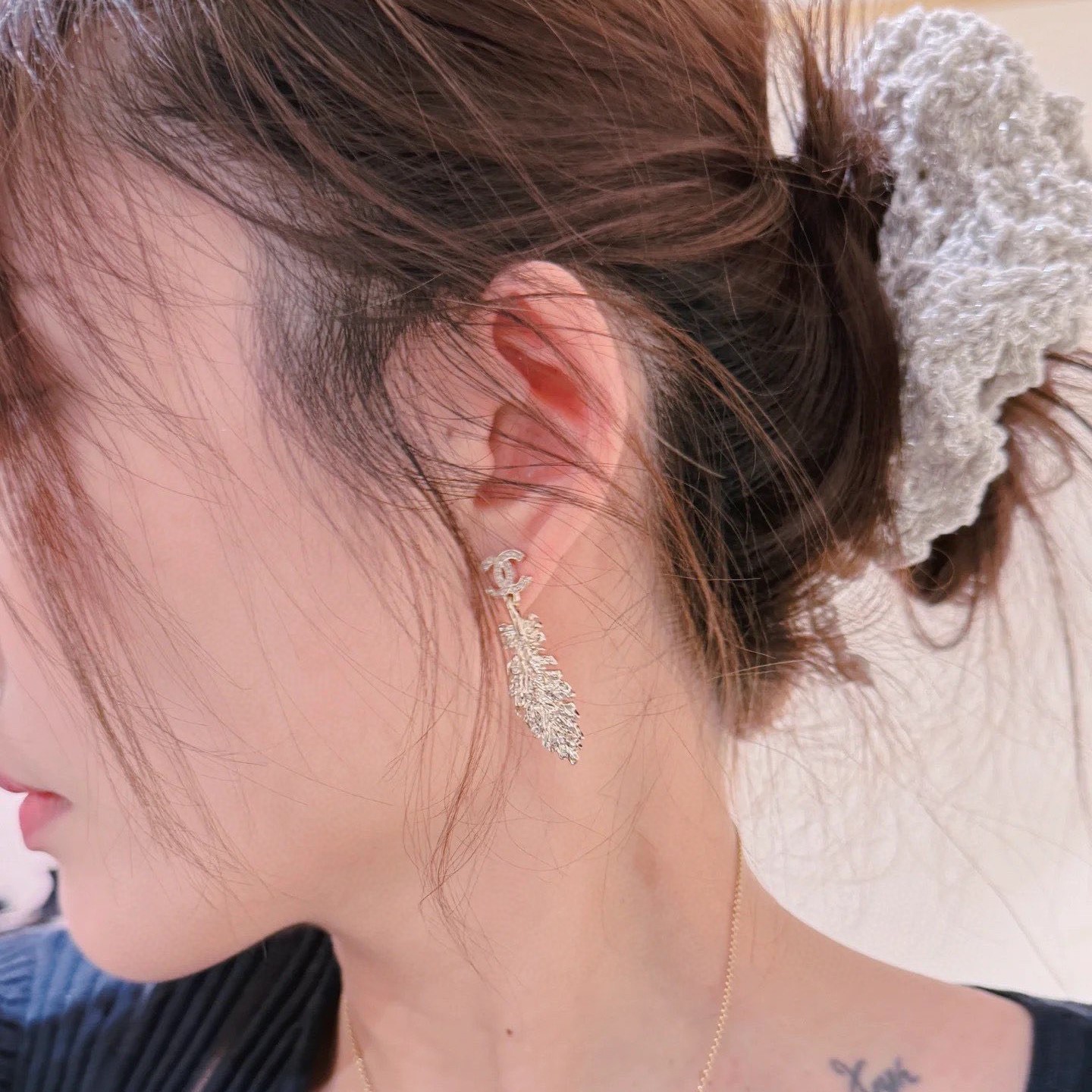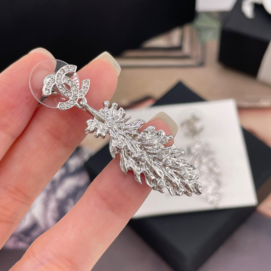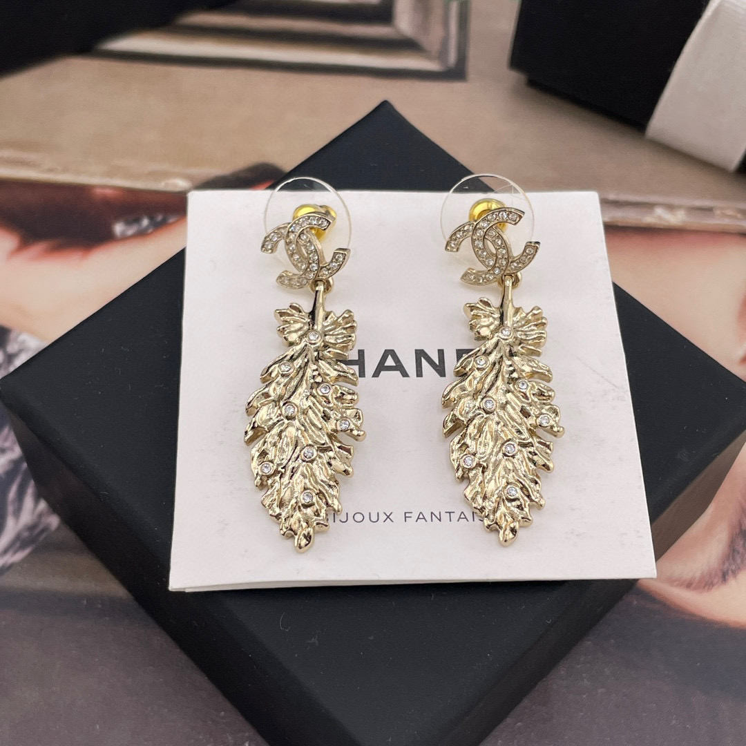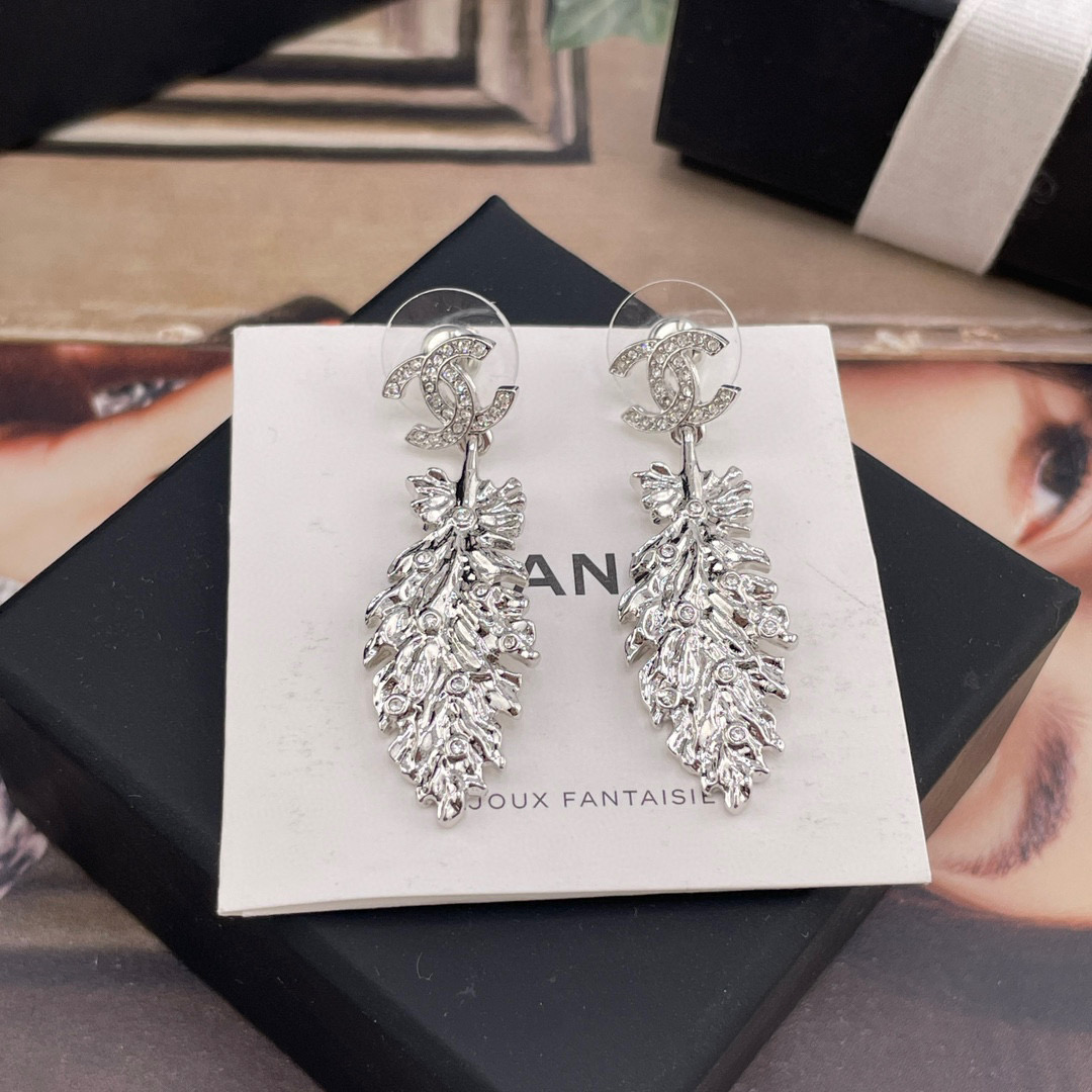 2025春夏新品 C家 雙C吊羽毛耳環|絕美新作
