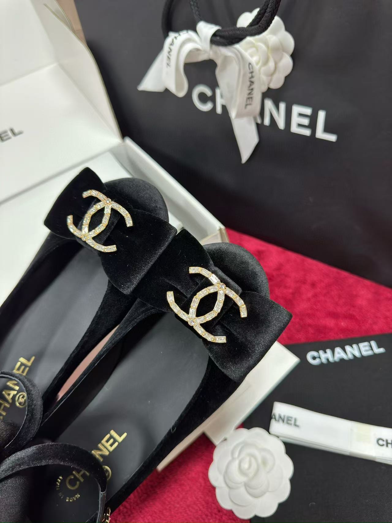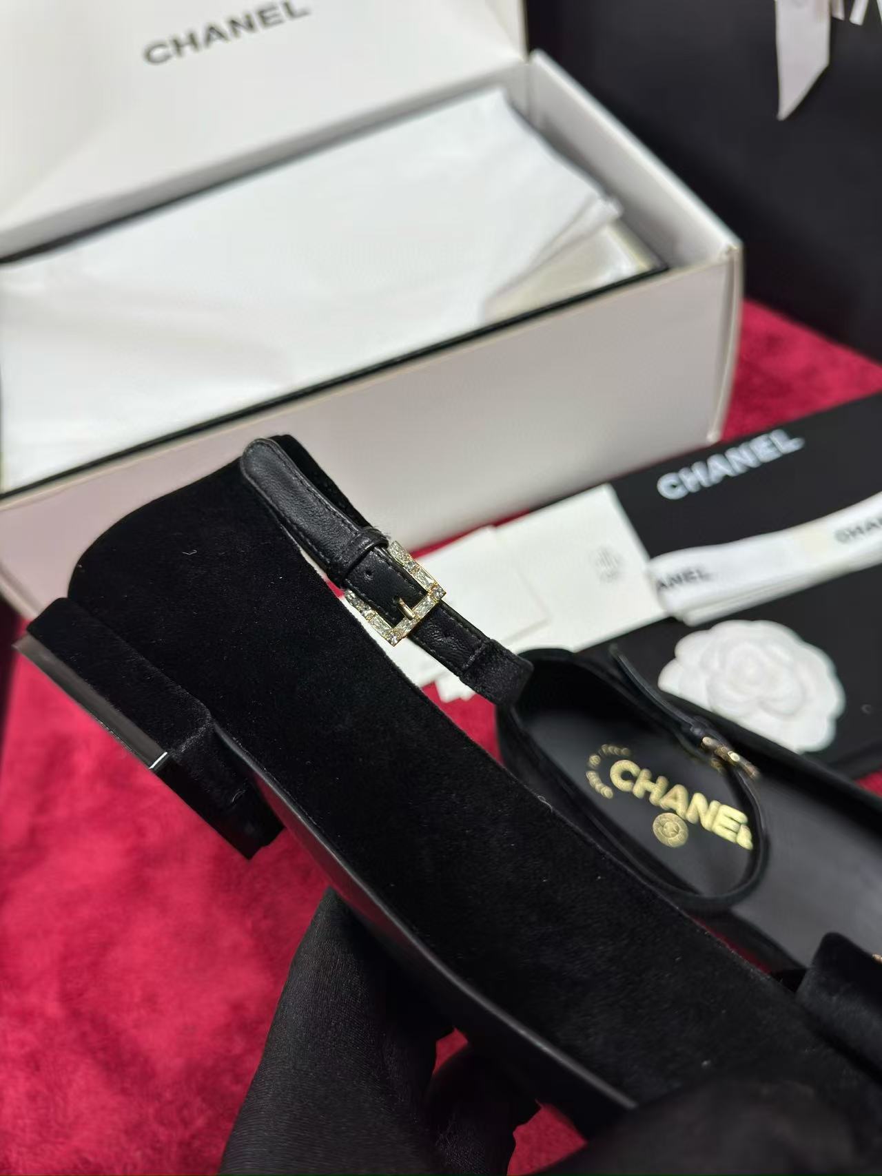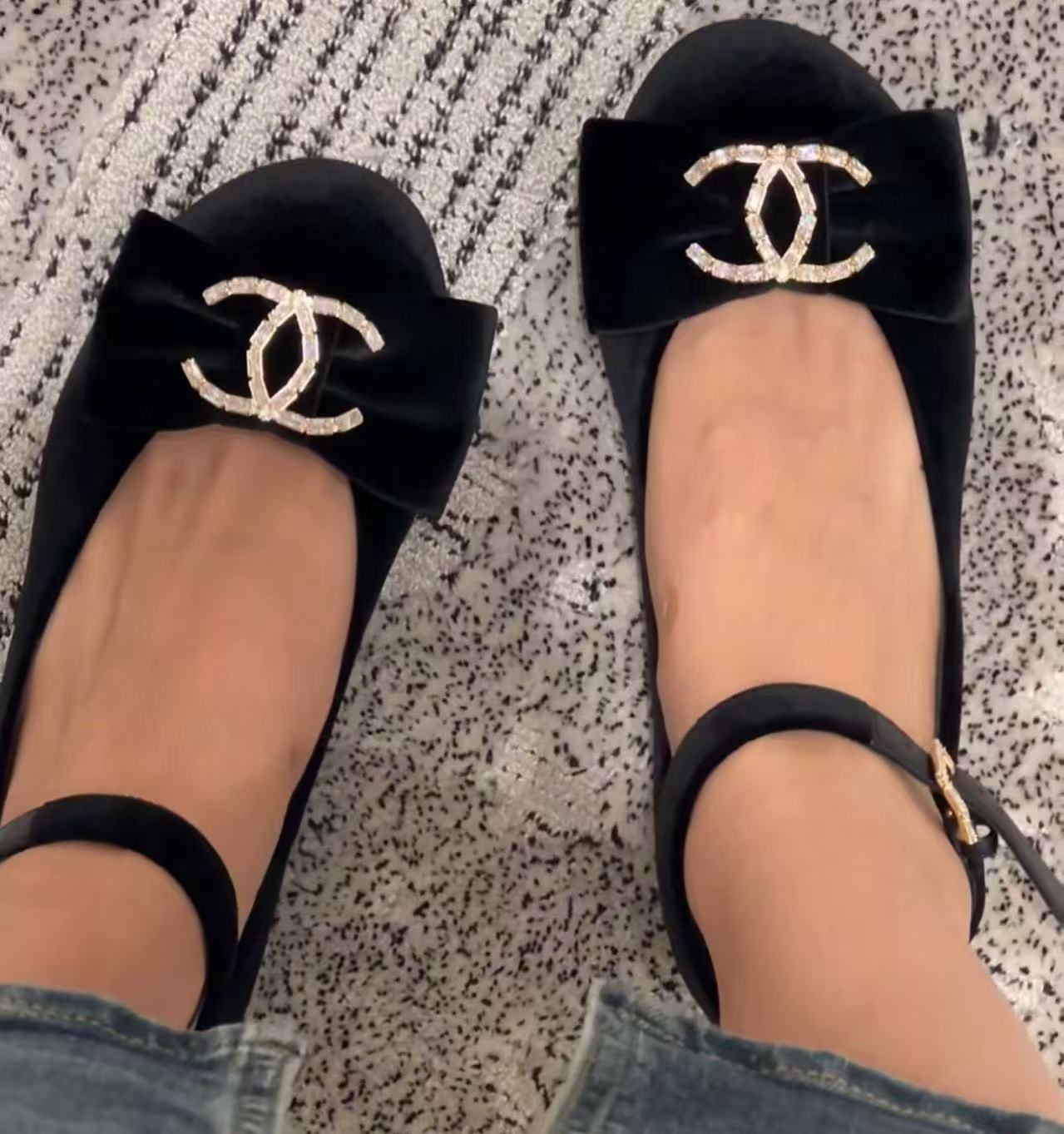 2024秋冬新品 C家大鑽扣絲絨蝴蝶結瑪麗珍鞋 上腳優雅氣質