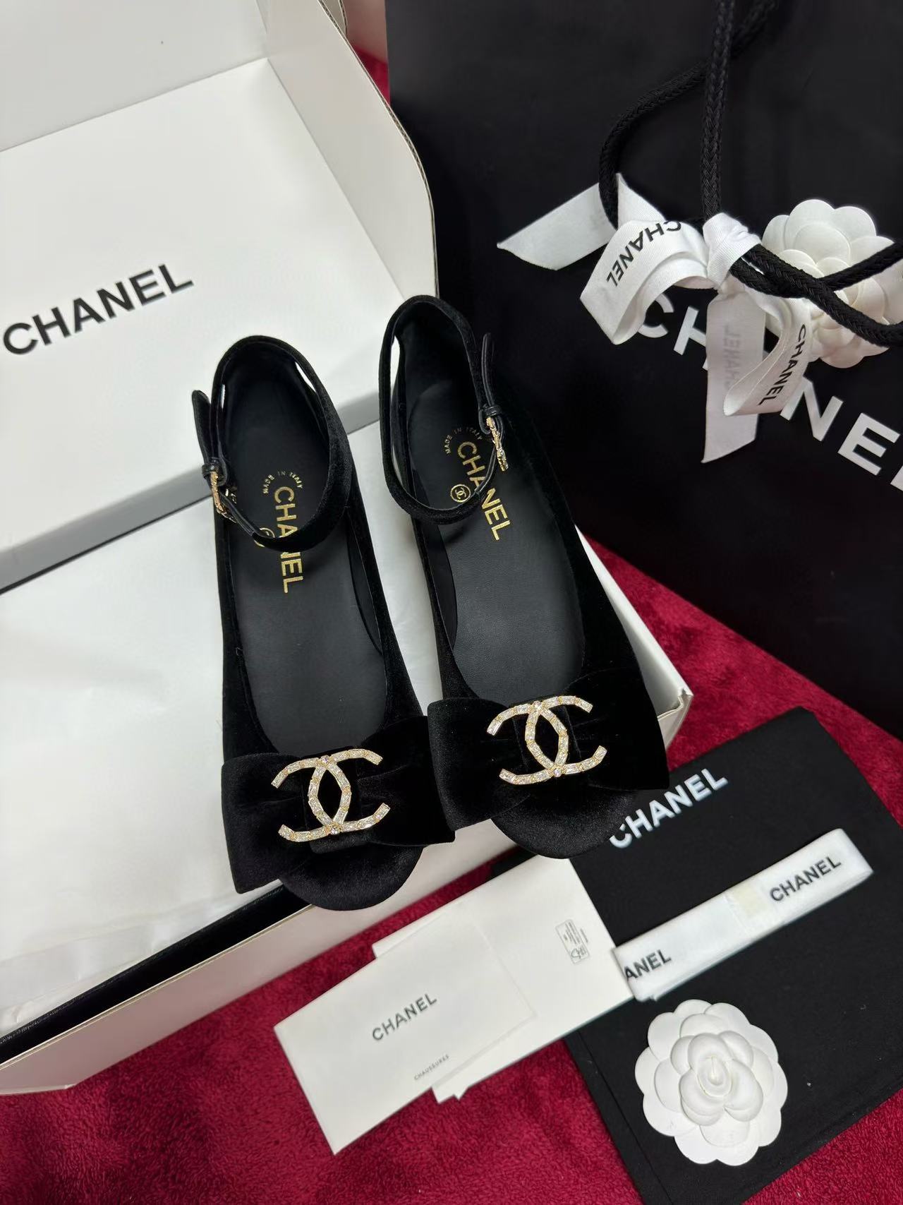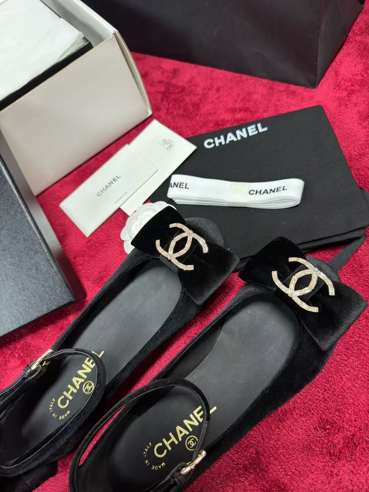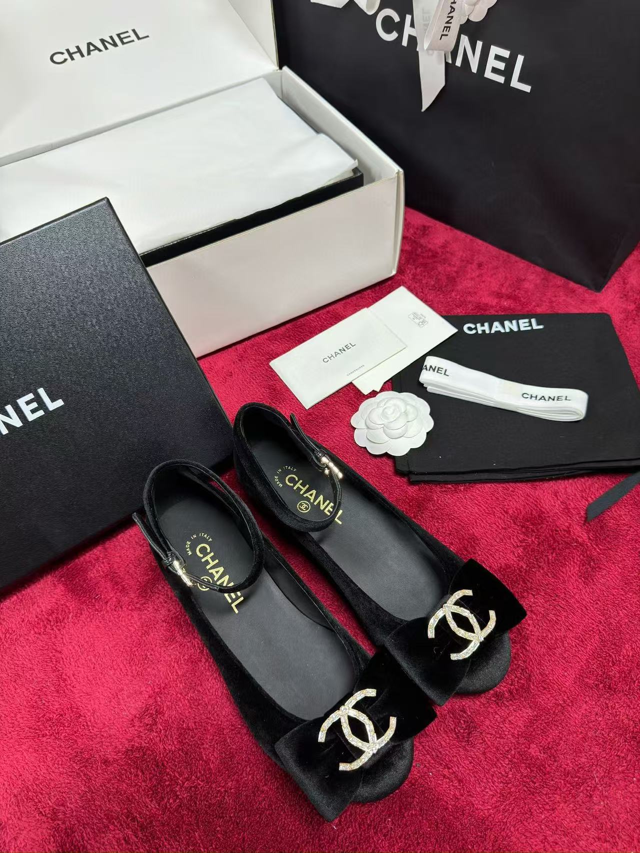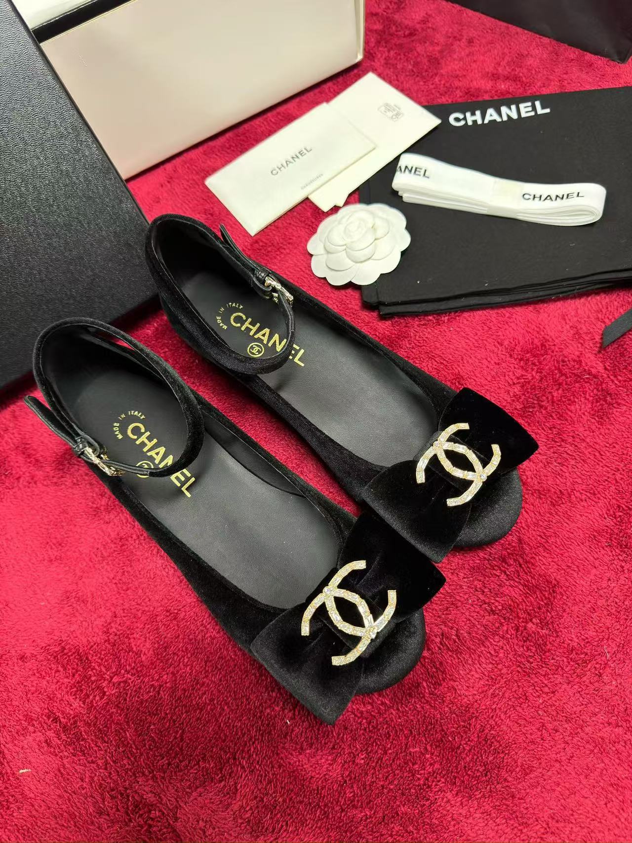 2024秋冬新品 C家大鑽扣絲絨蝴蝶結瑪麗珍鞋 上腳優雅氣質