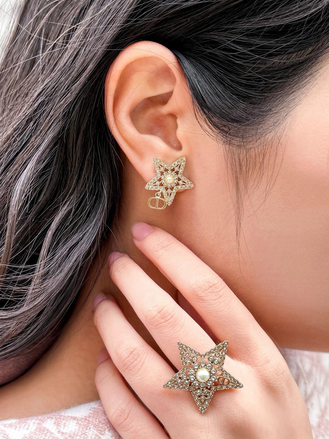 2026早春新品 D家 滿鑽鏤空星吊CD珠耳釘