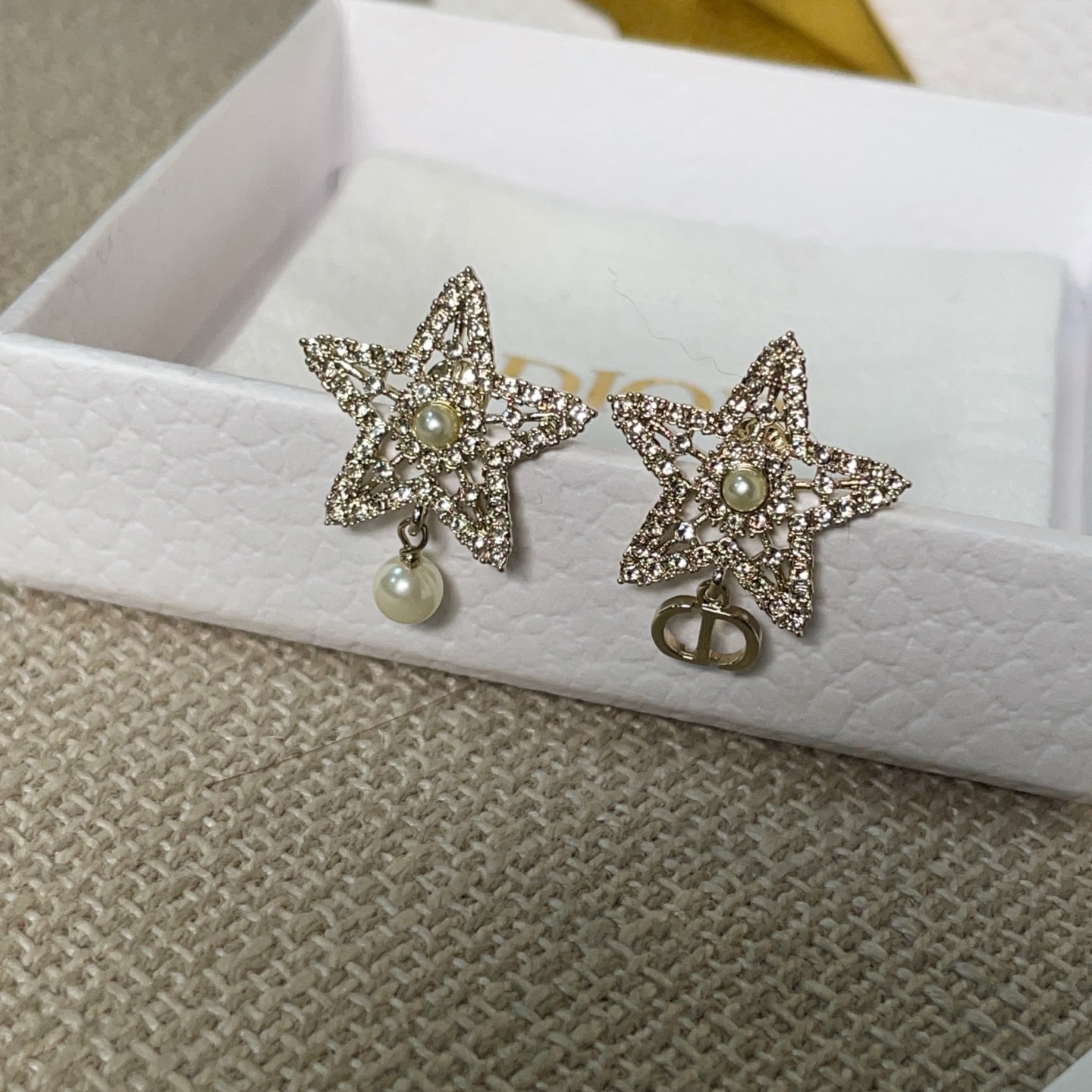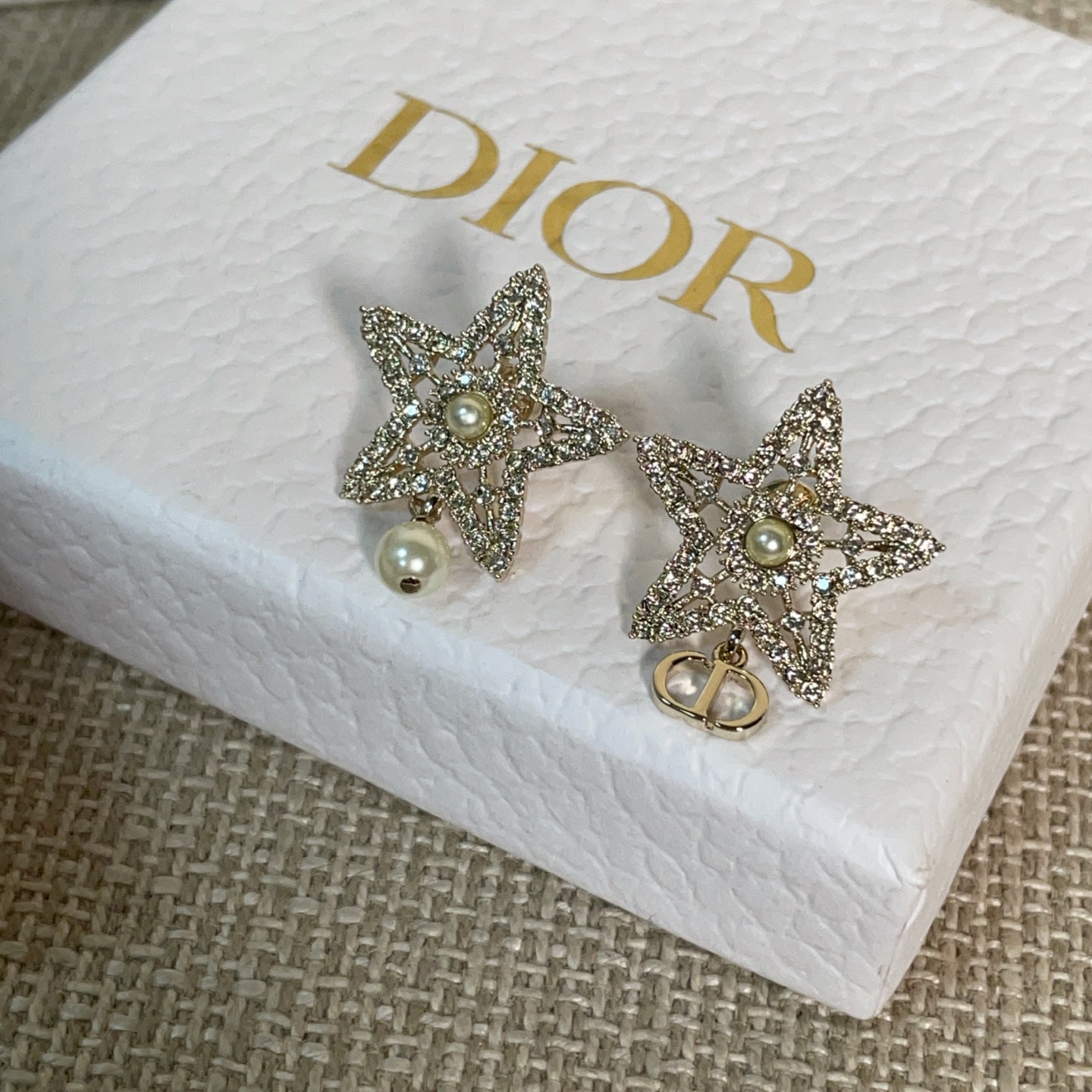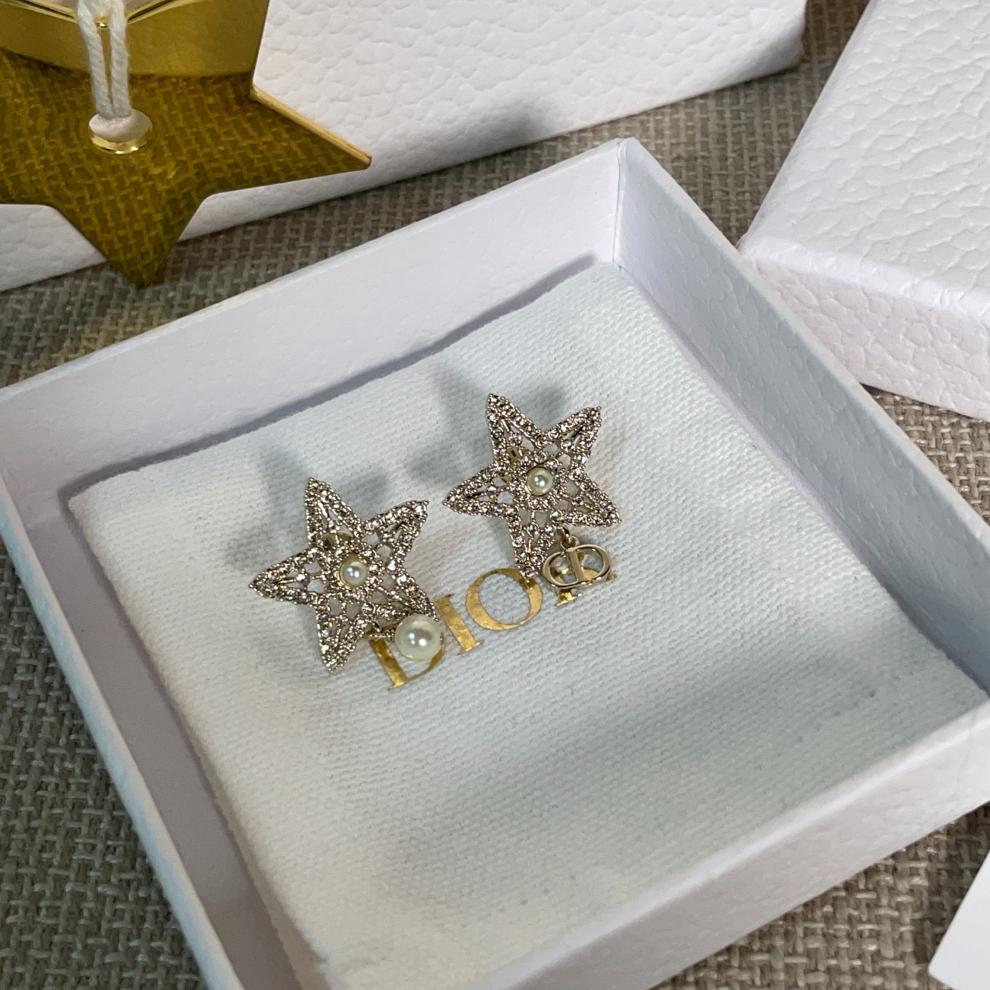 第一眼會被它的配色吸引——柔和的淺金色調,搭配經典 CD 標誌,再加上鏤空滿鑽的五角星設計,視覺層次非常豐富。