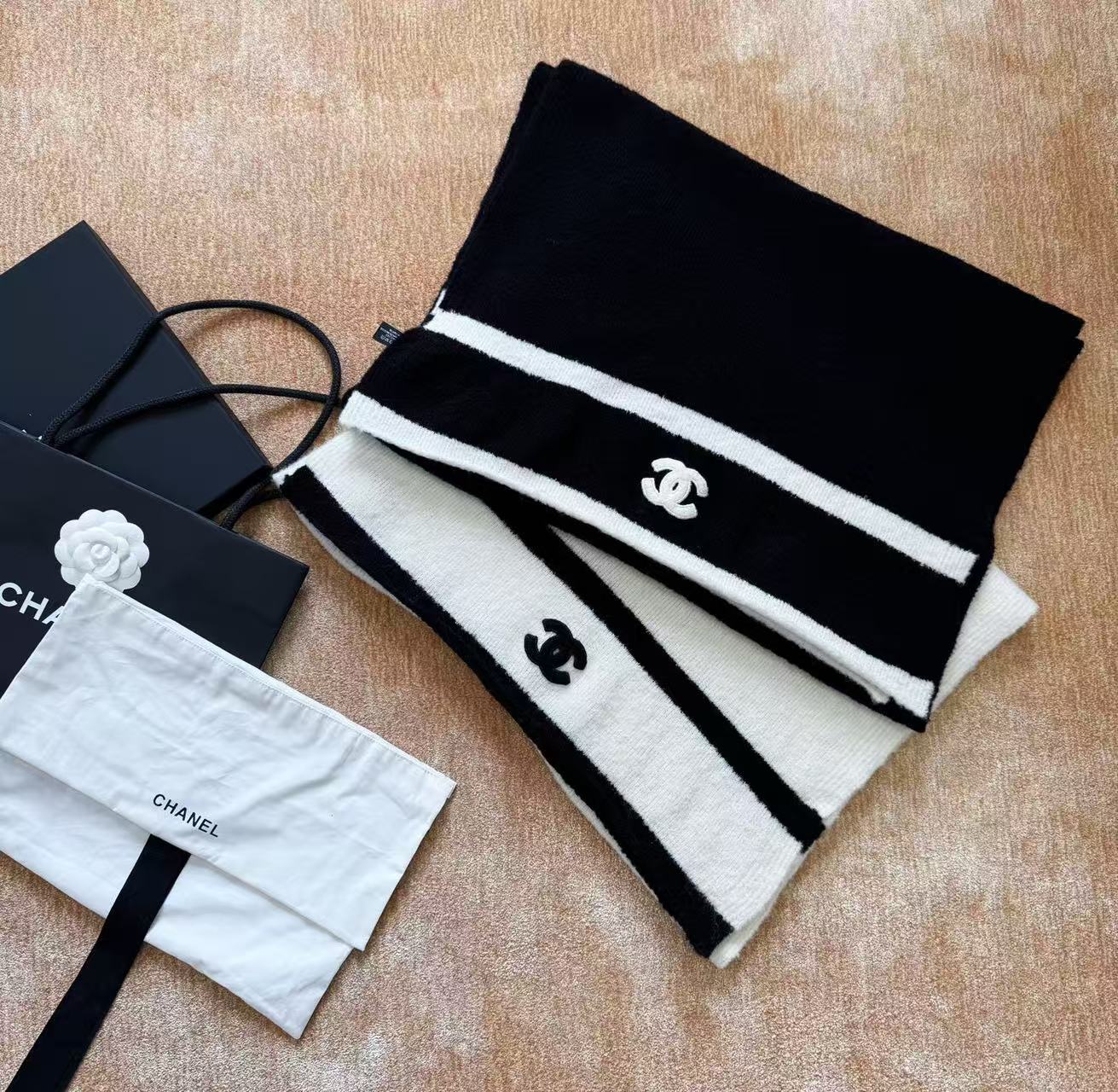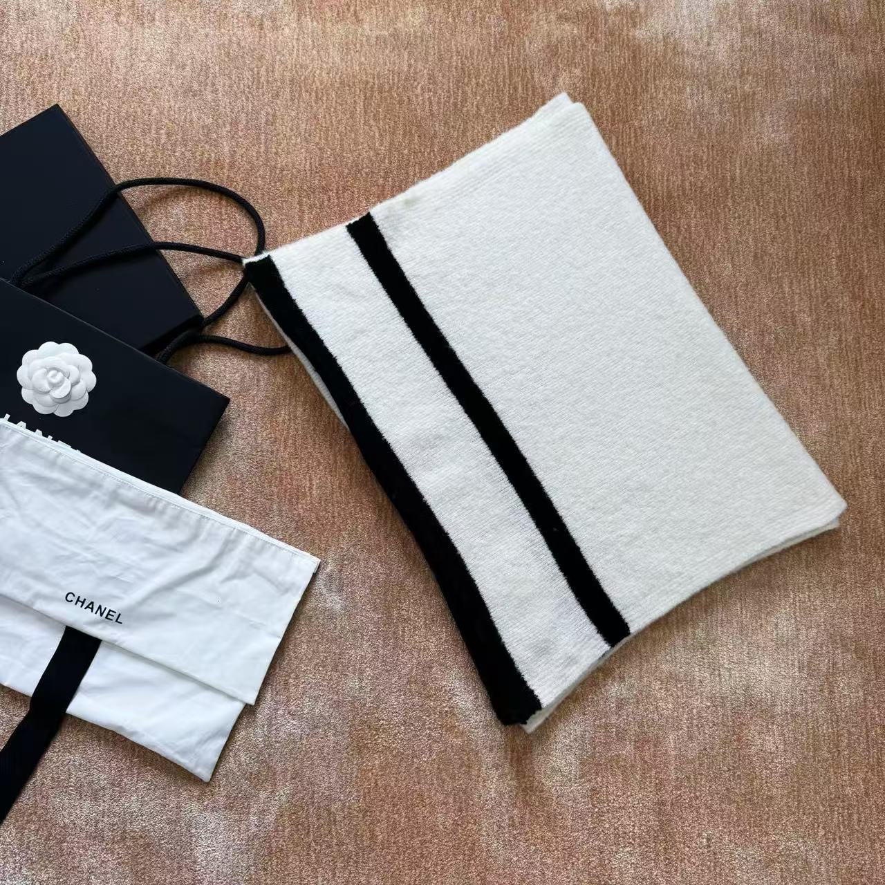 黑與白始終是不可撼動的經典圖騰。這款 26C 早春系列的山羊絨圍巾,將洗鍊的黑白撞色條紋與品牌標誌性的雙 C Logo 完美揉合,展現出不費力的法式高級感。