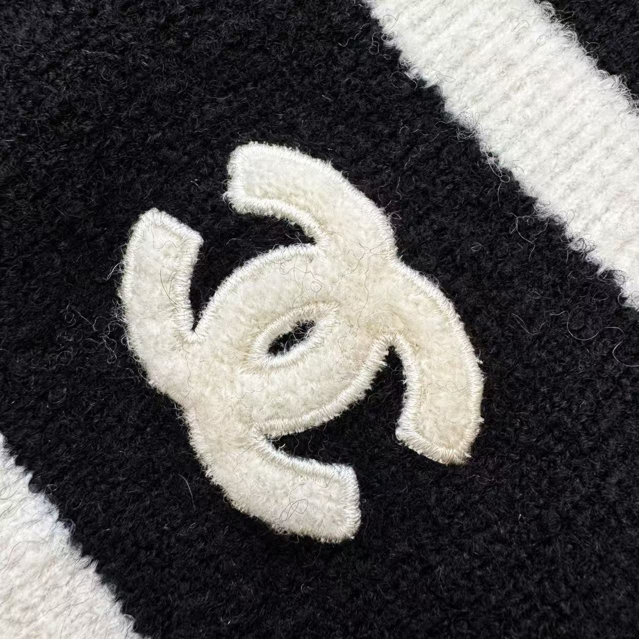高階雙 C 刺繡技術:正面點綴的雙 C Logo 採用高密度刺繡工法,針腳細密平整且具備微立體視覺效果,在撞色條紋的背景下展現出鮮明的品牌識別。